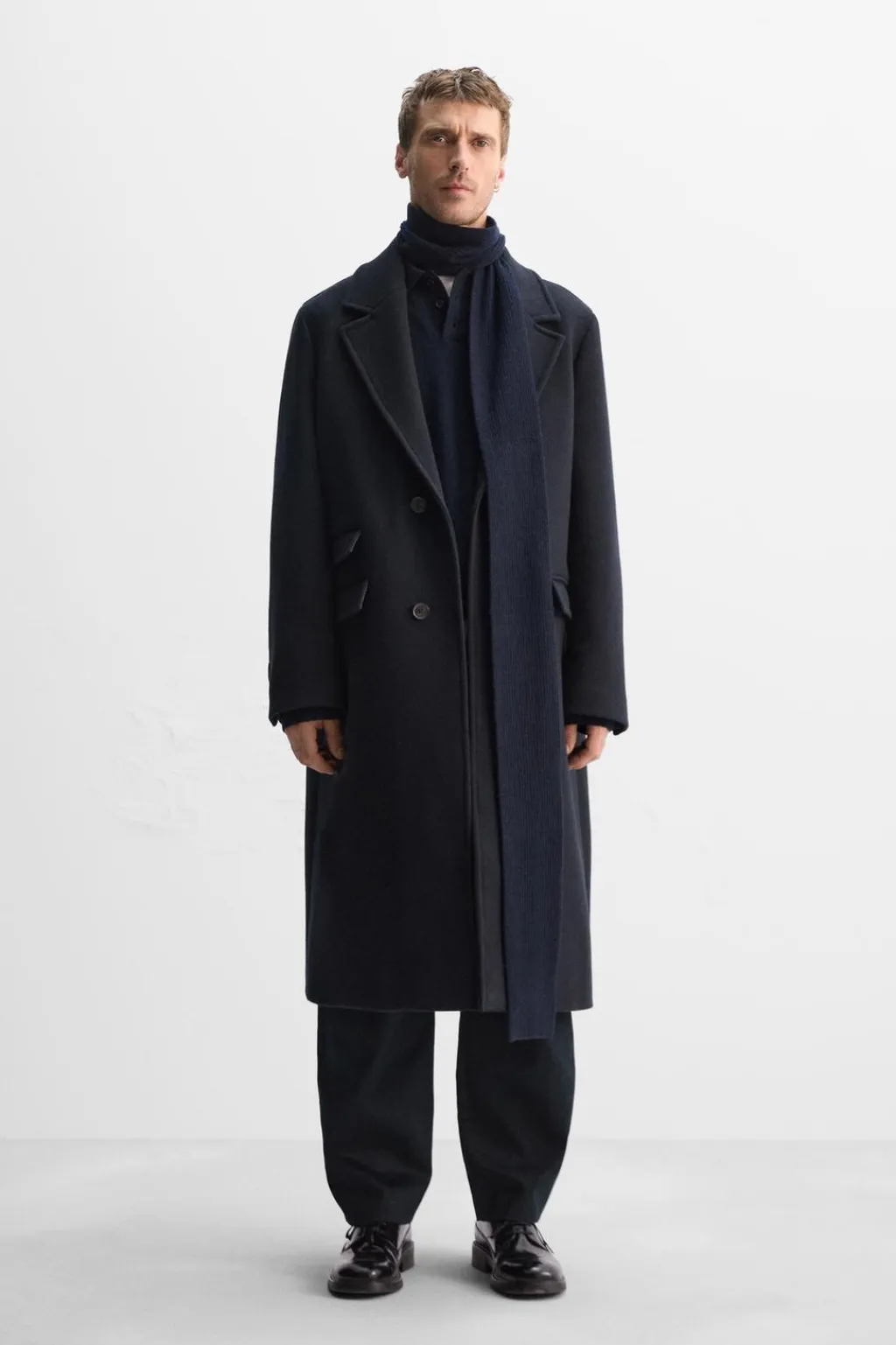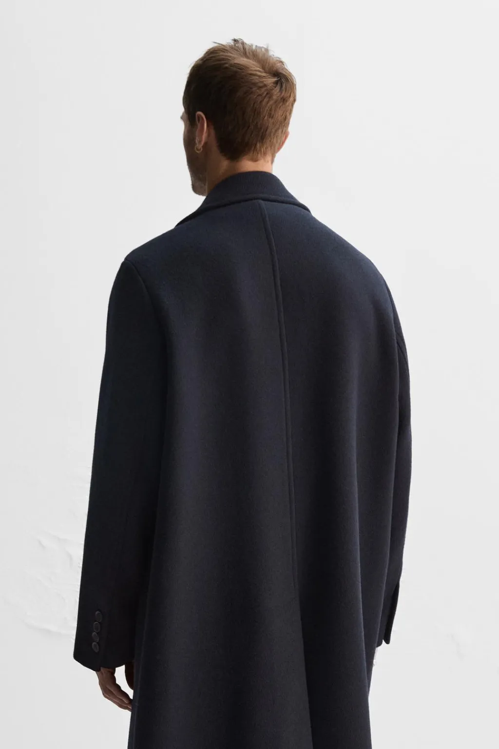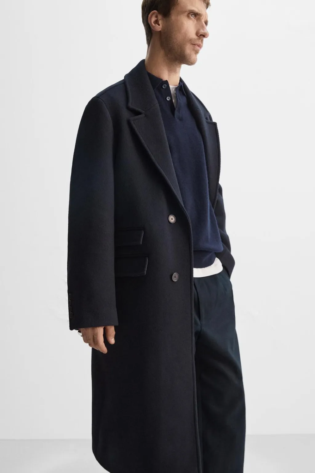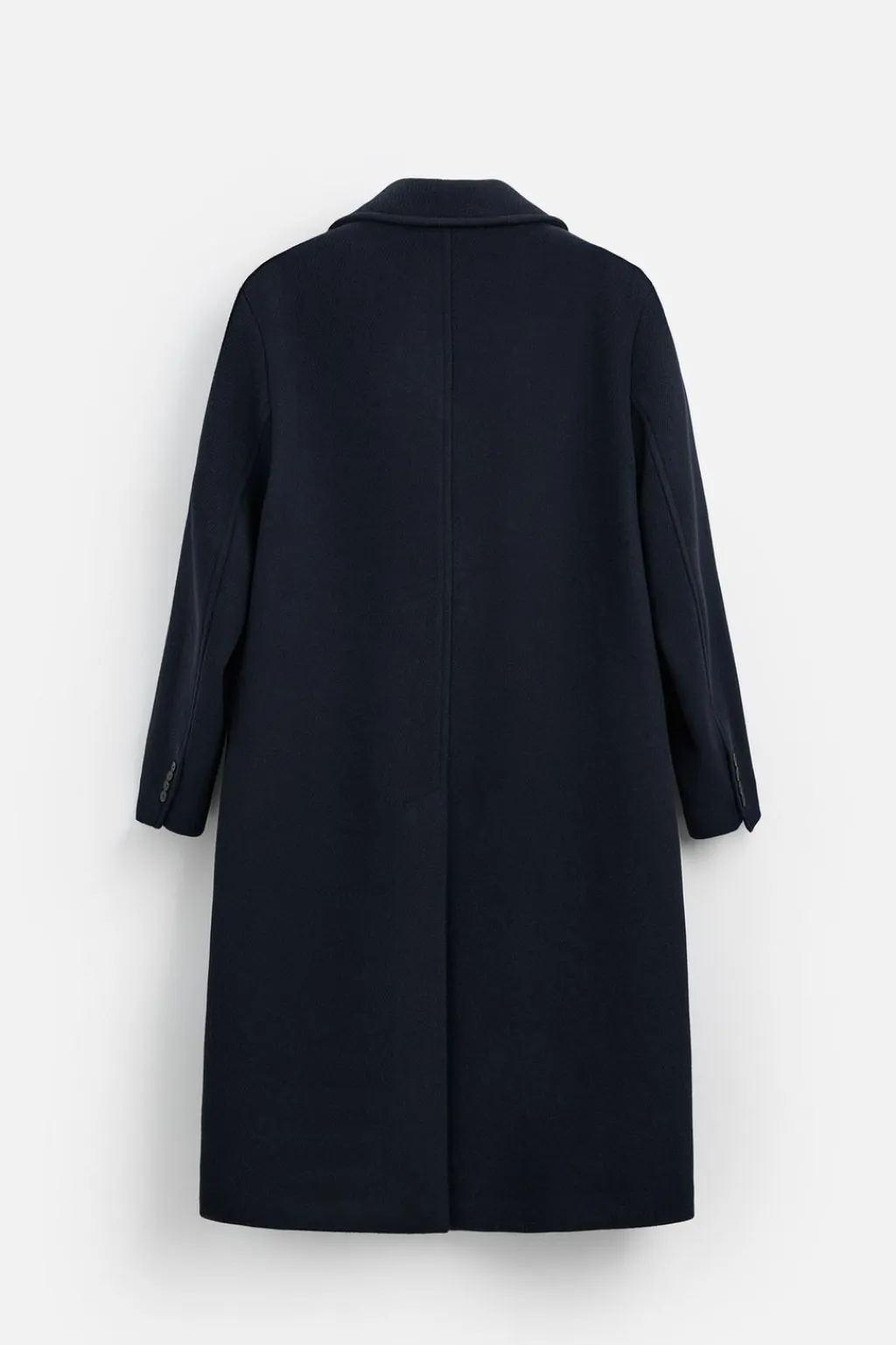 Abrigo relaxed fit confeccionado en tejido con lana. Cuello con solapas de muesca y manga larga acabada en puño con botones. Bolsillos con solapa en delantero. Bajo con abertura central en espalda. Cierre frontal de botonadura.