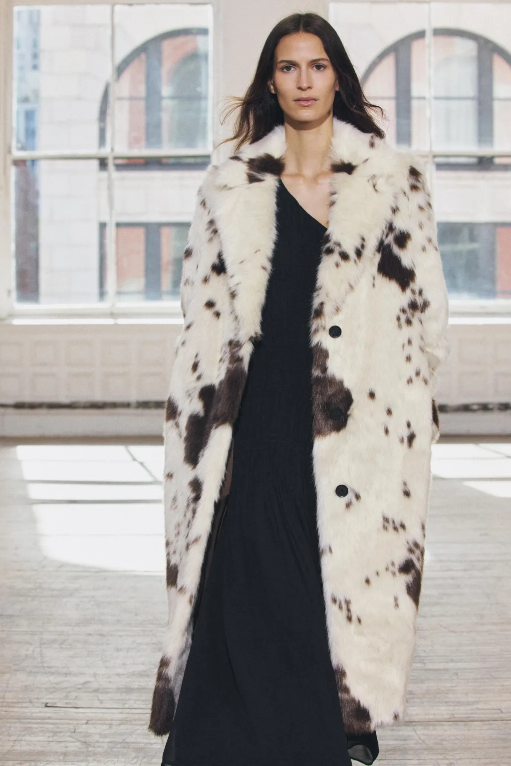 Abrigo largo con cuello solapa de muescas y manga larga. Bolsillos delantero. Forro interior a tono. Cierre frontal con botones.