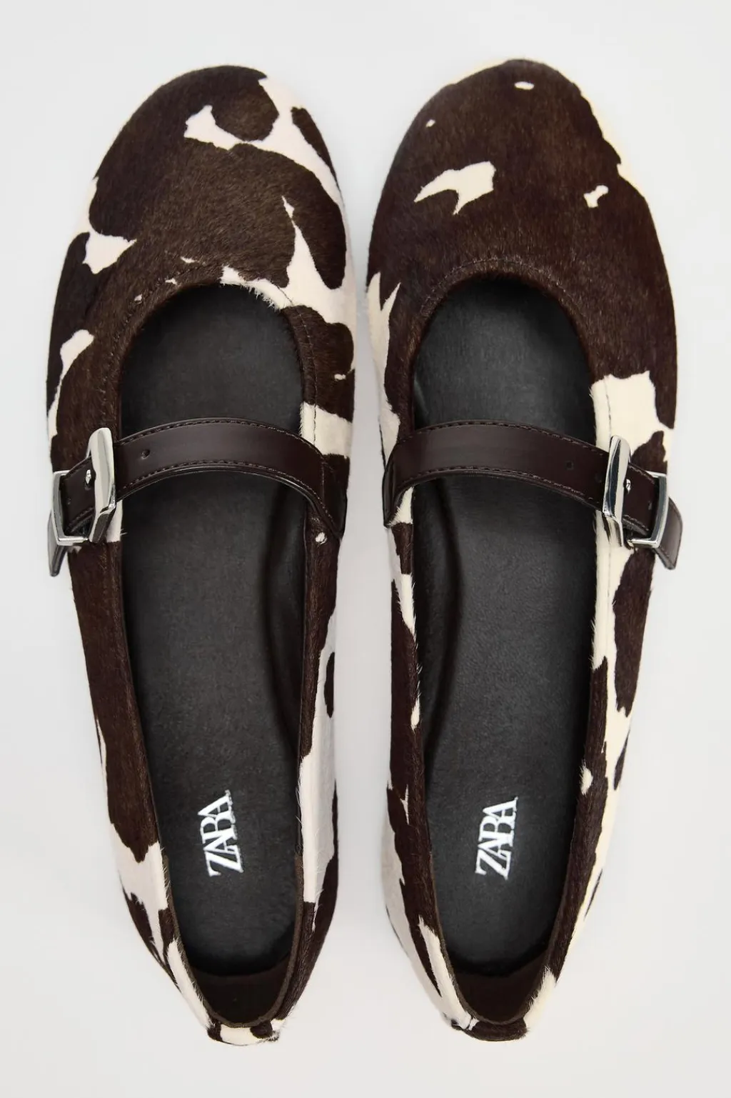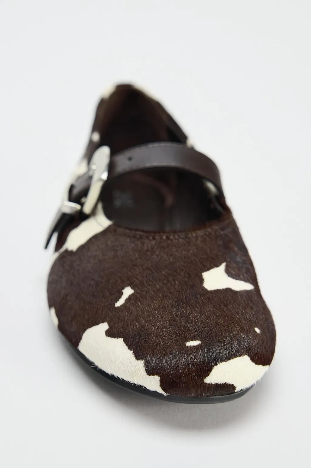 Zapato tipo bailarina en piel. Estampado animal. Detalle de tira con hebilla en la parte delantera. Acabado en punta redonda.