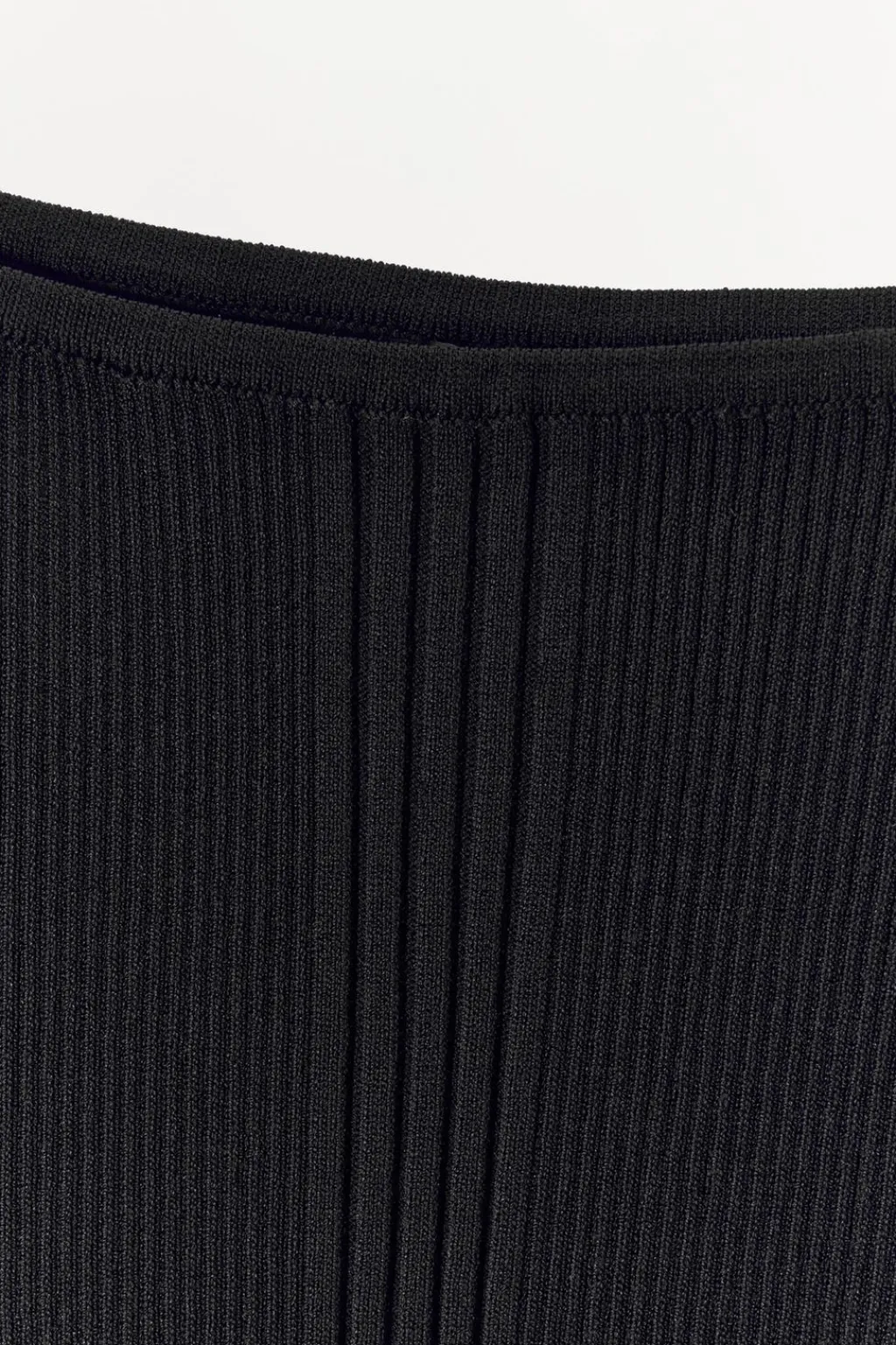 Body de escote barco y manga larga acabada en volantes. Tejido en rib. Cierre en bajo con botones a presión.