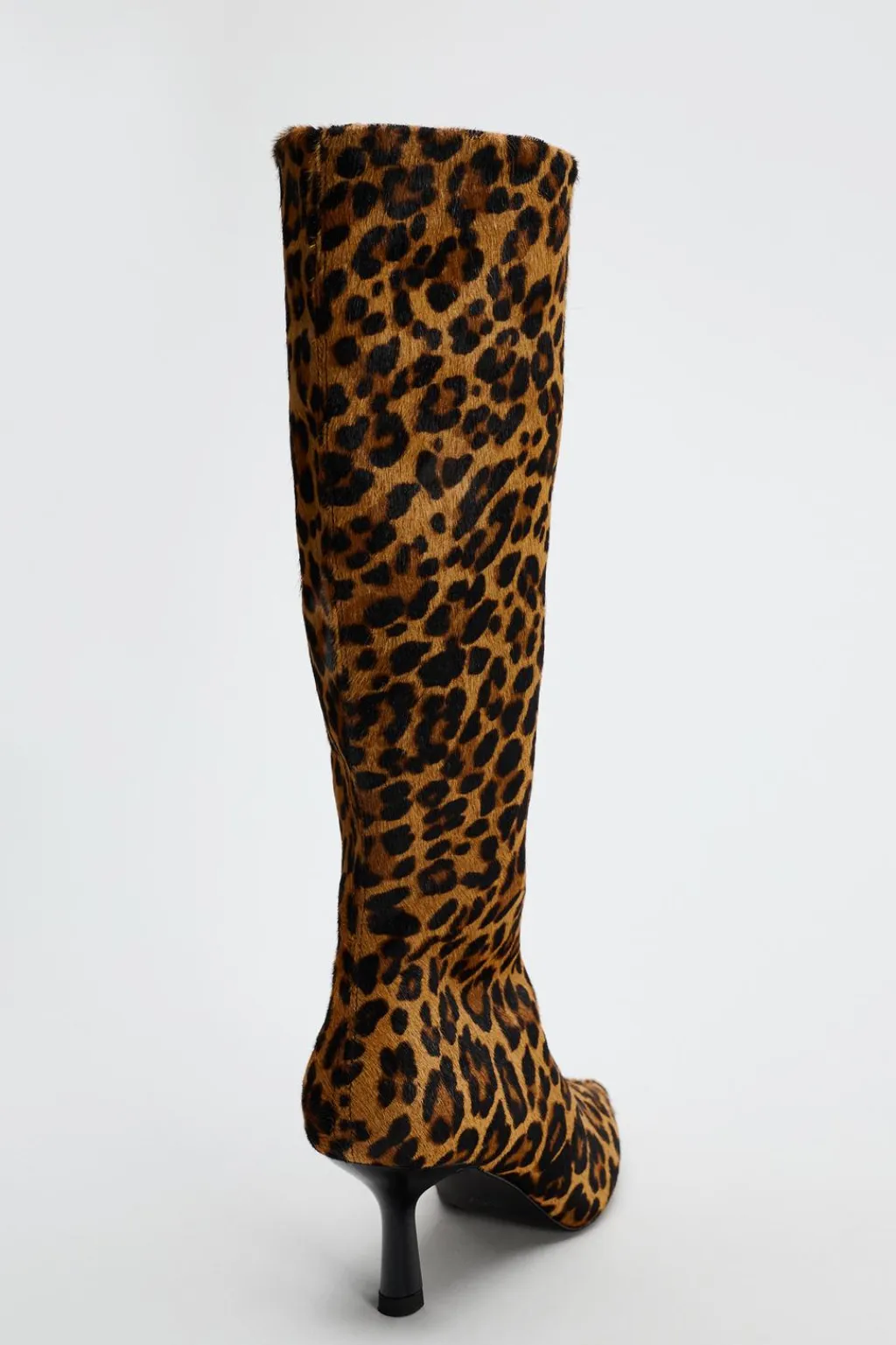 Zapato tipo bota en piel. Estampado animal. Tacón fino. Cierre mediante cremallera.Acabado en punta.
