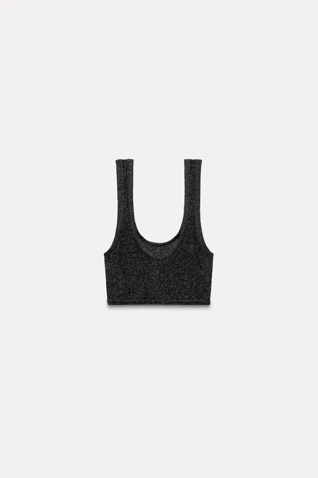 Bralette confeccionado en tejido tipo red con hilo metalizado. Escote redondo y tirantes anchos.