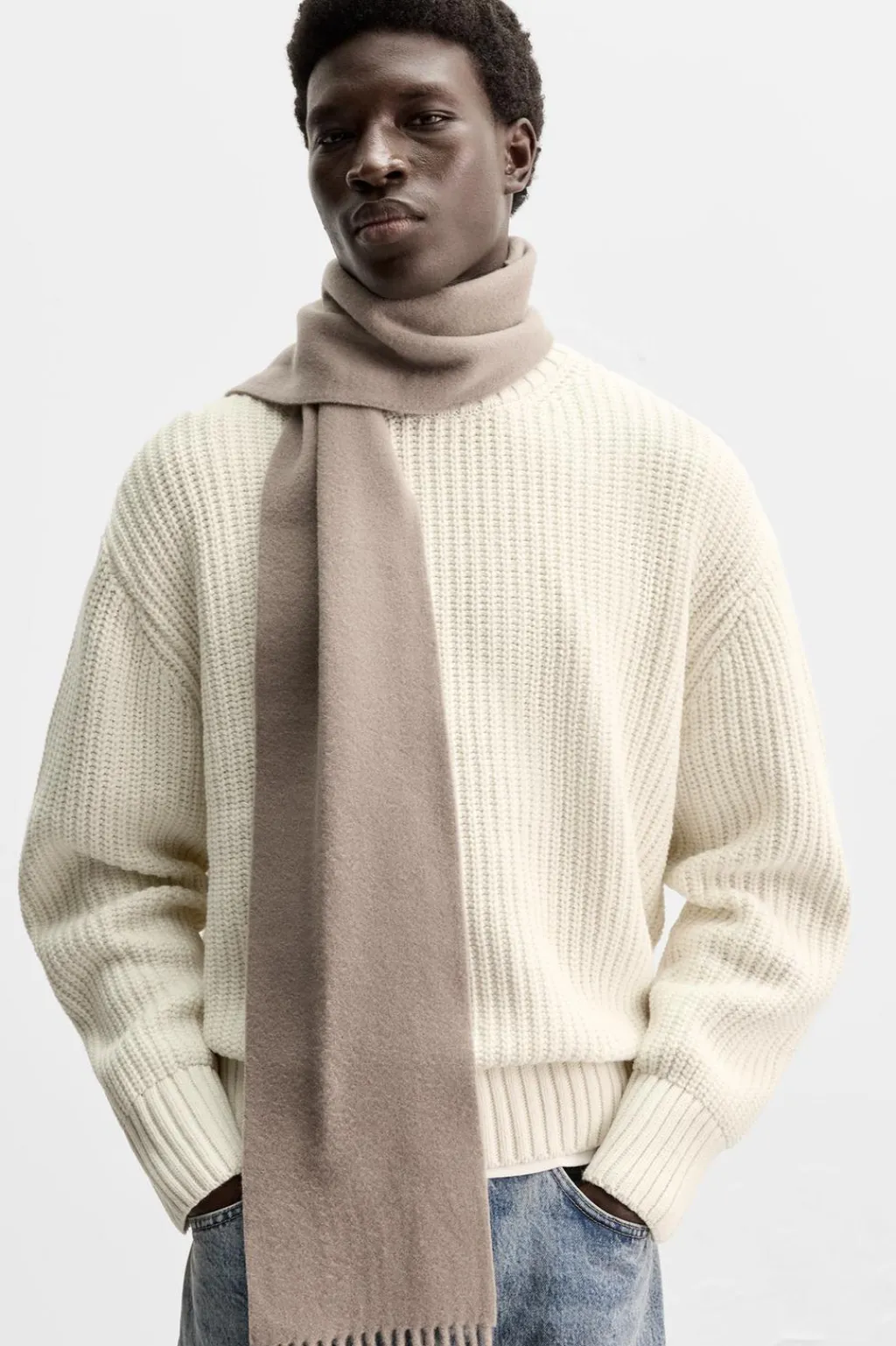 Bufanda confeccionada en tejido de lana. Acabado con flecos.