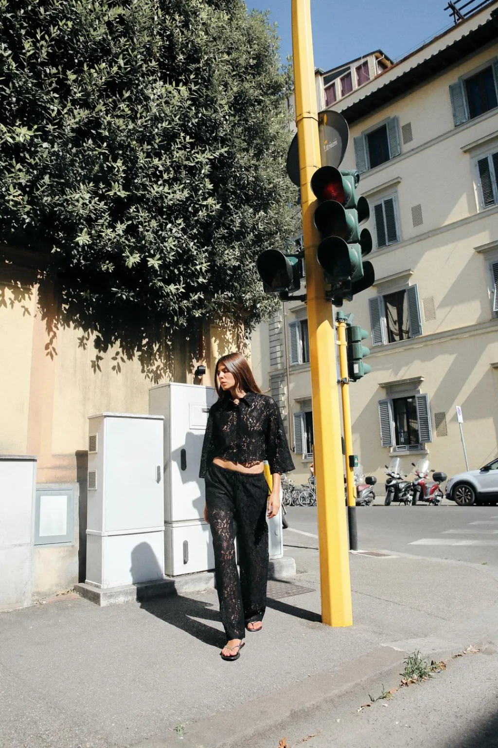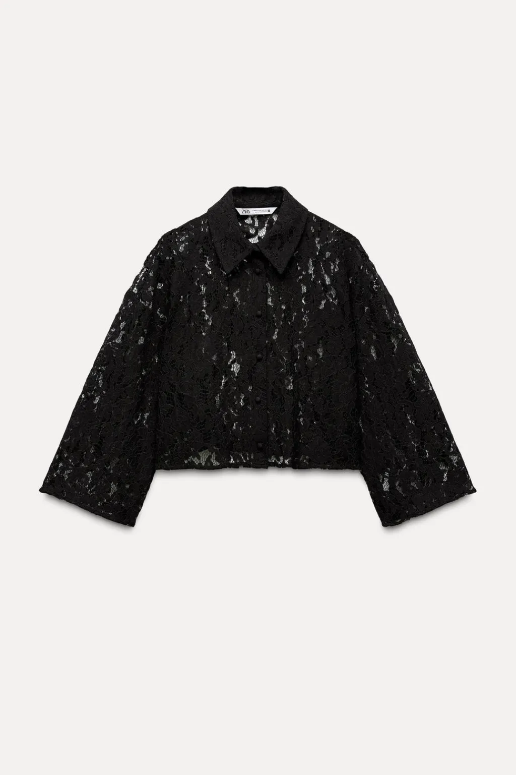 Camisa cropped de cuello solapa y manga larga. Cierre frontal con botones a tono.