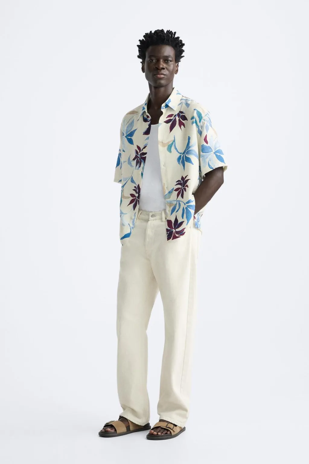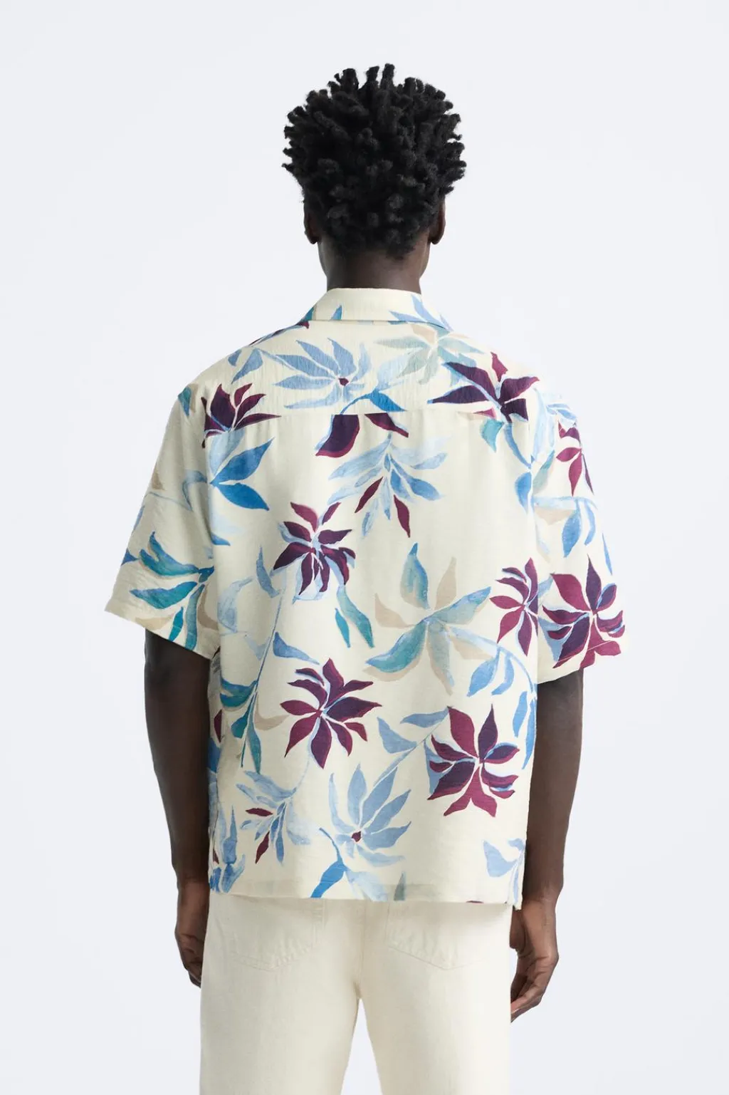 Camisa relaxed fit confeccionada en tejido con mezcla de viscosa. Cuello solapa y manga corta. Cierre frontal de botonadura.