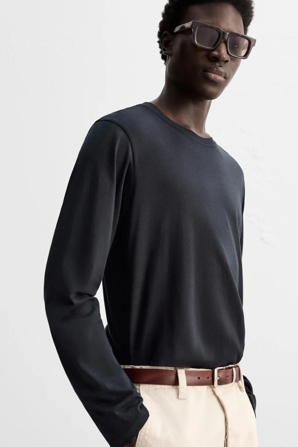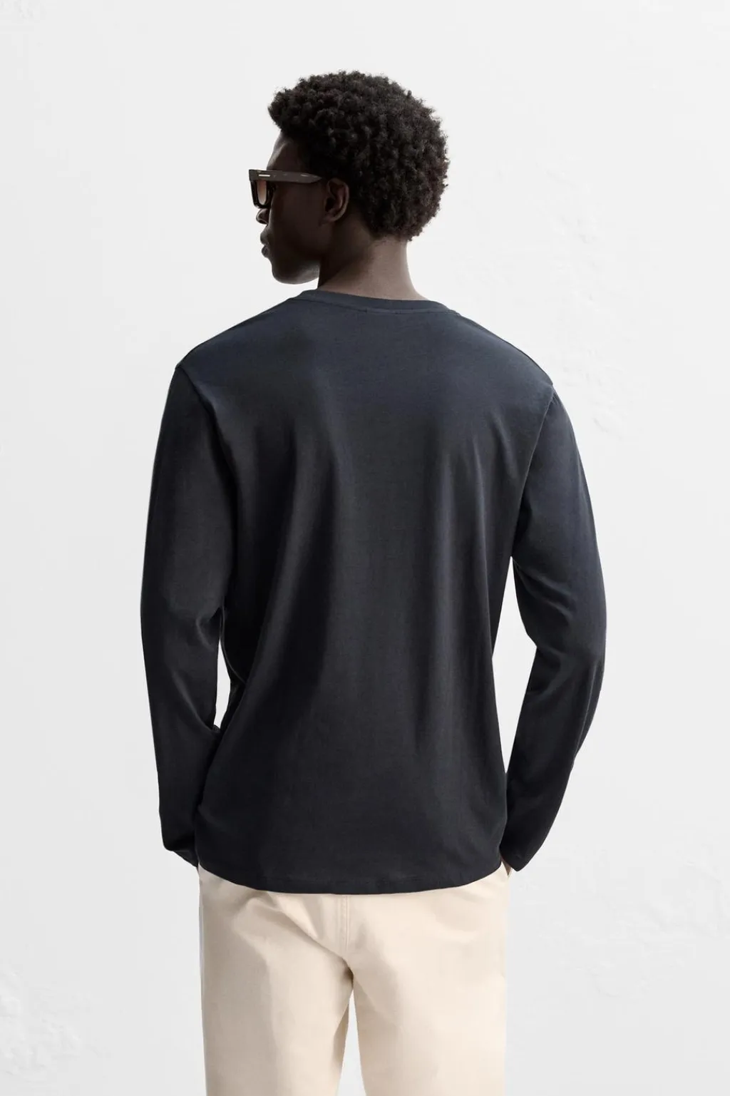Camiseta regular fit confeccionada en tejido de algodón ligero. Cuello redondo y manga larga.