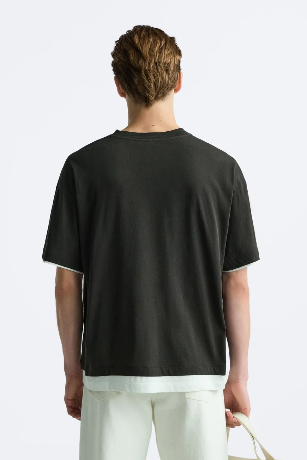 Camiseta relaxed fit. Cuello redondo y manga corta. Bajo con acabado doble combinado a contraste.