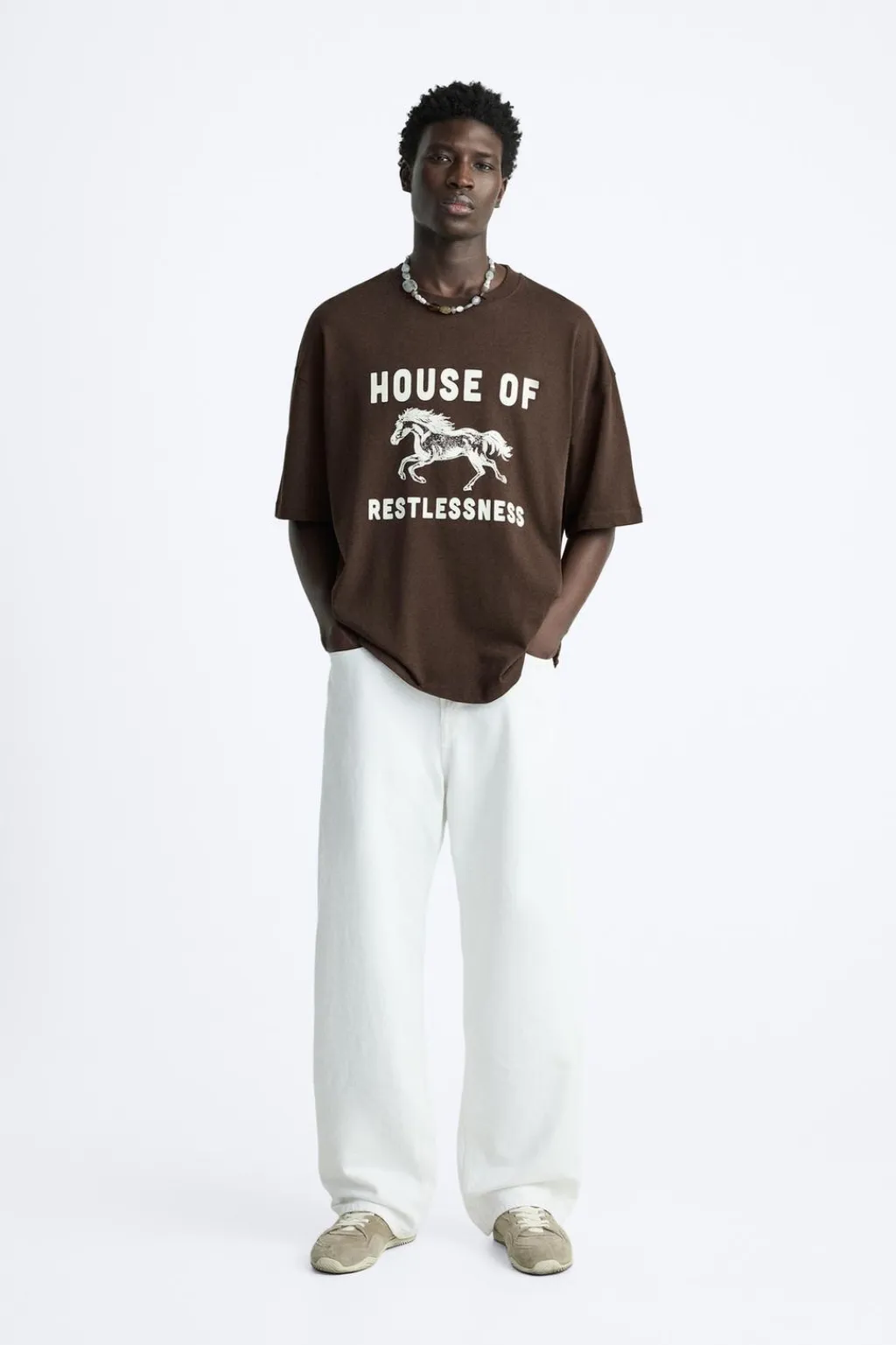 Camiseta relaxed fit. Cuello redondo y manga corta. Estampación frontal combinada a contraste.