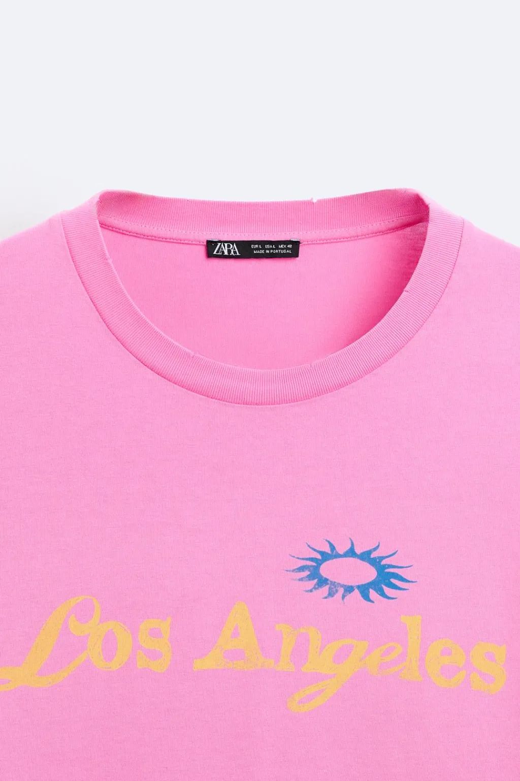 Camiseta amplia con cuello redondo y manga corta. Estampaciones combinadas a contraste. Efecto lavado.
