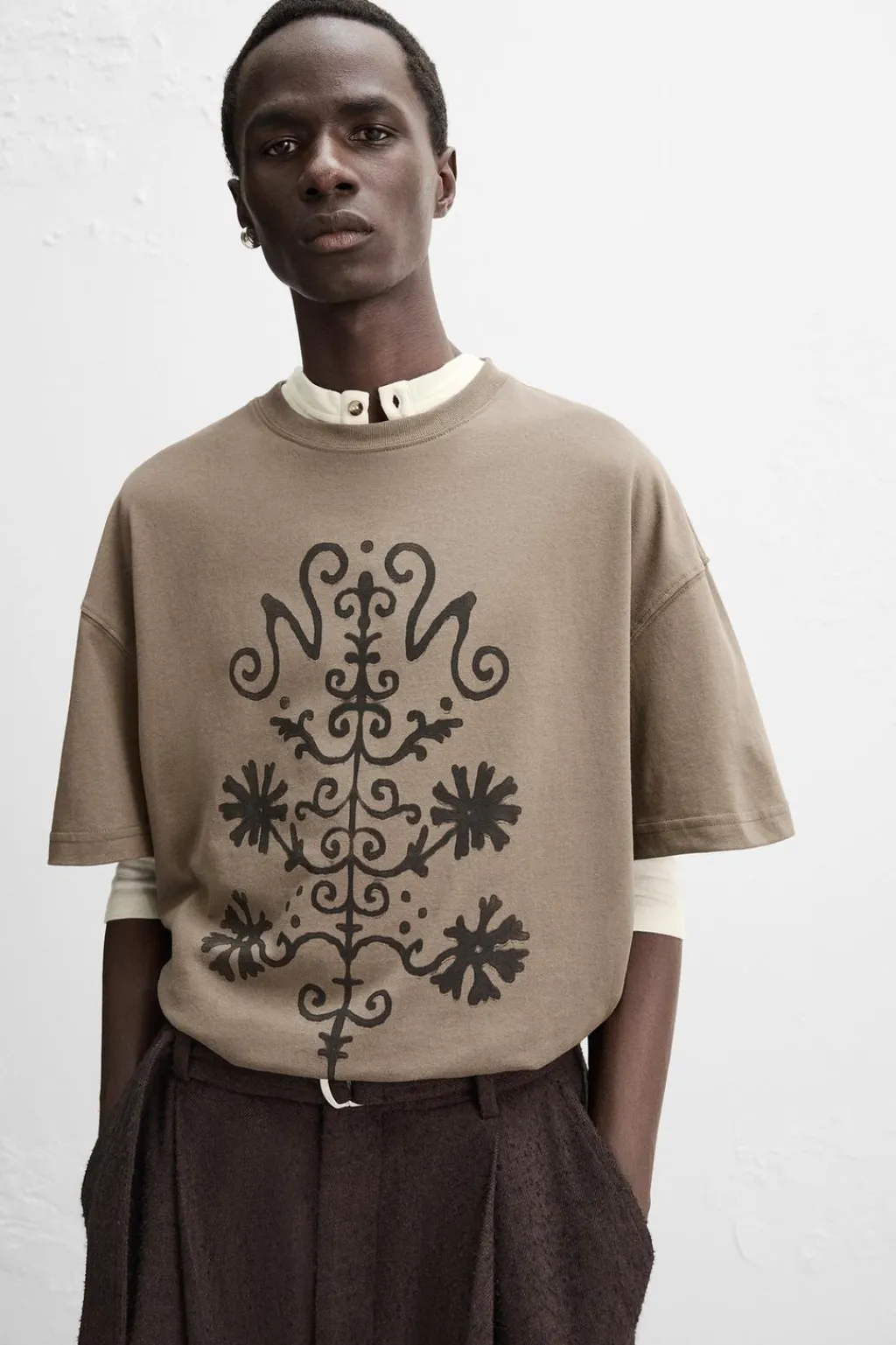 Camiseta relaxed fit. Cuello redondo y manga corta. Estampado combinado a contraste en delantero.