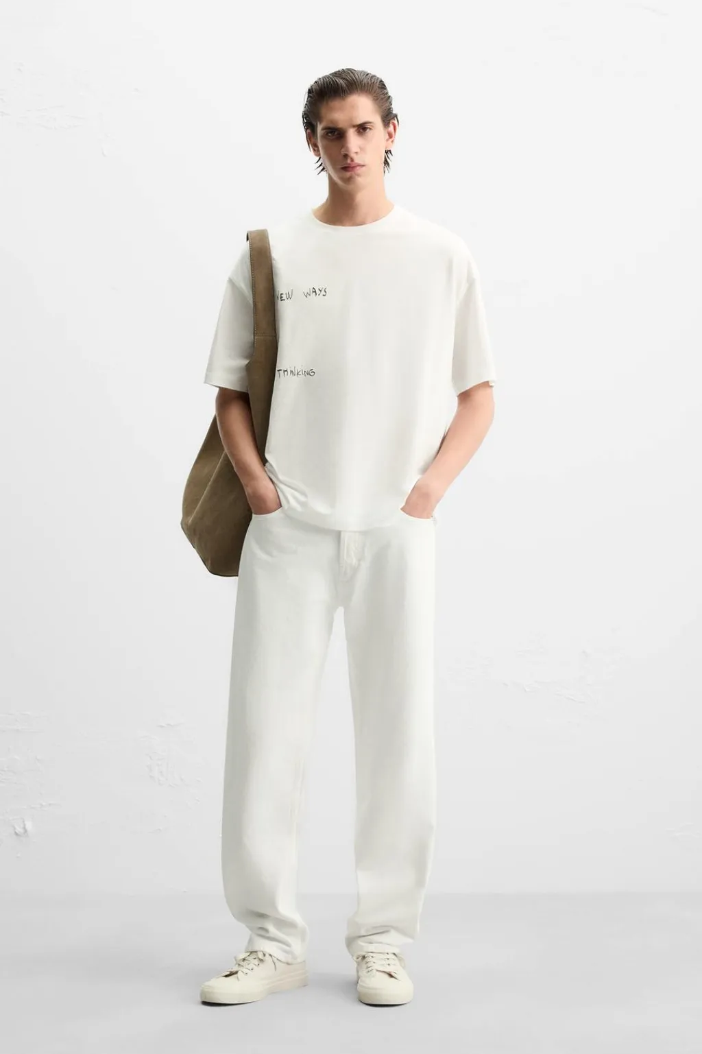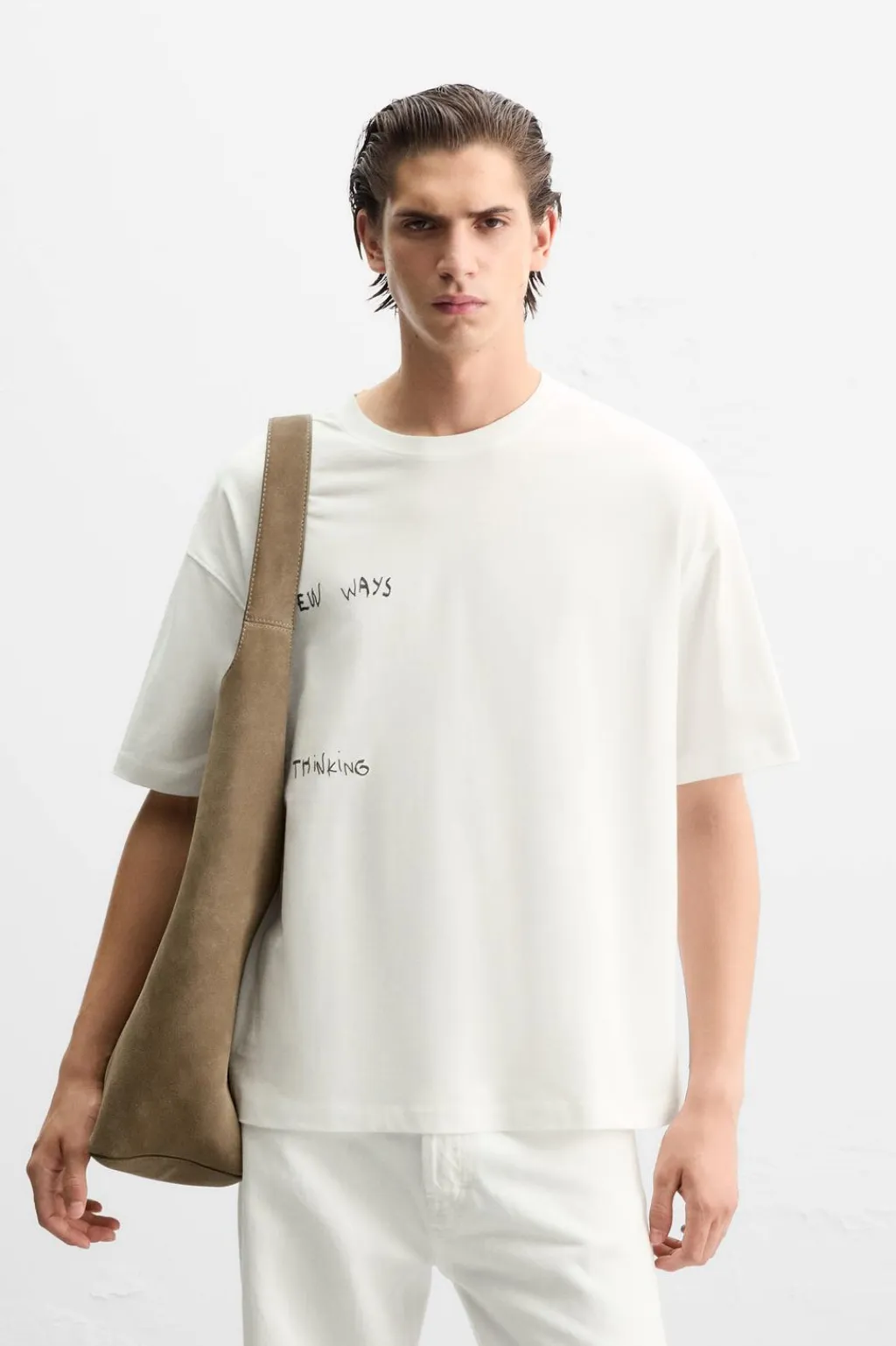 Camiseta relaxed fit. Cuello redondo y manga corta. Estampación frontal de texto combinado a contraste con aplicación de parche en espalda.
