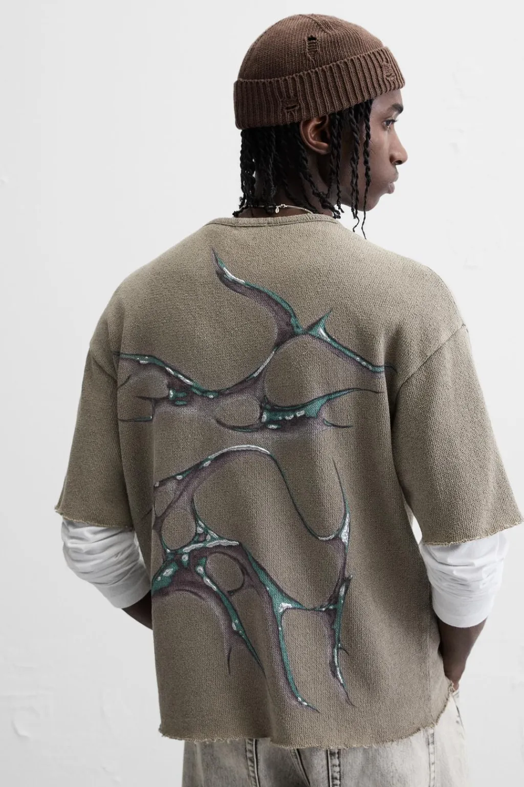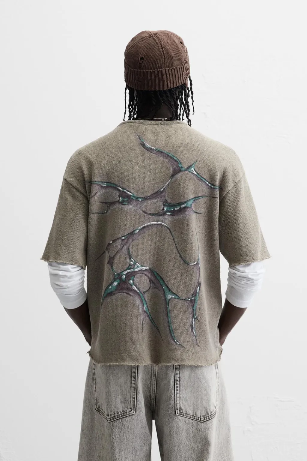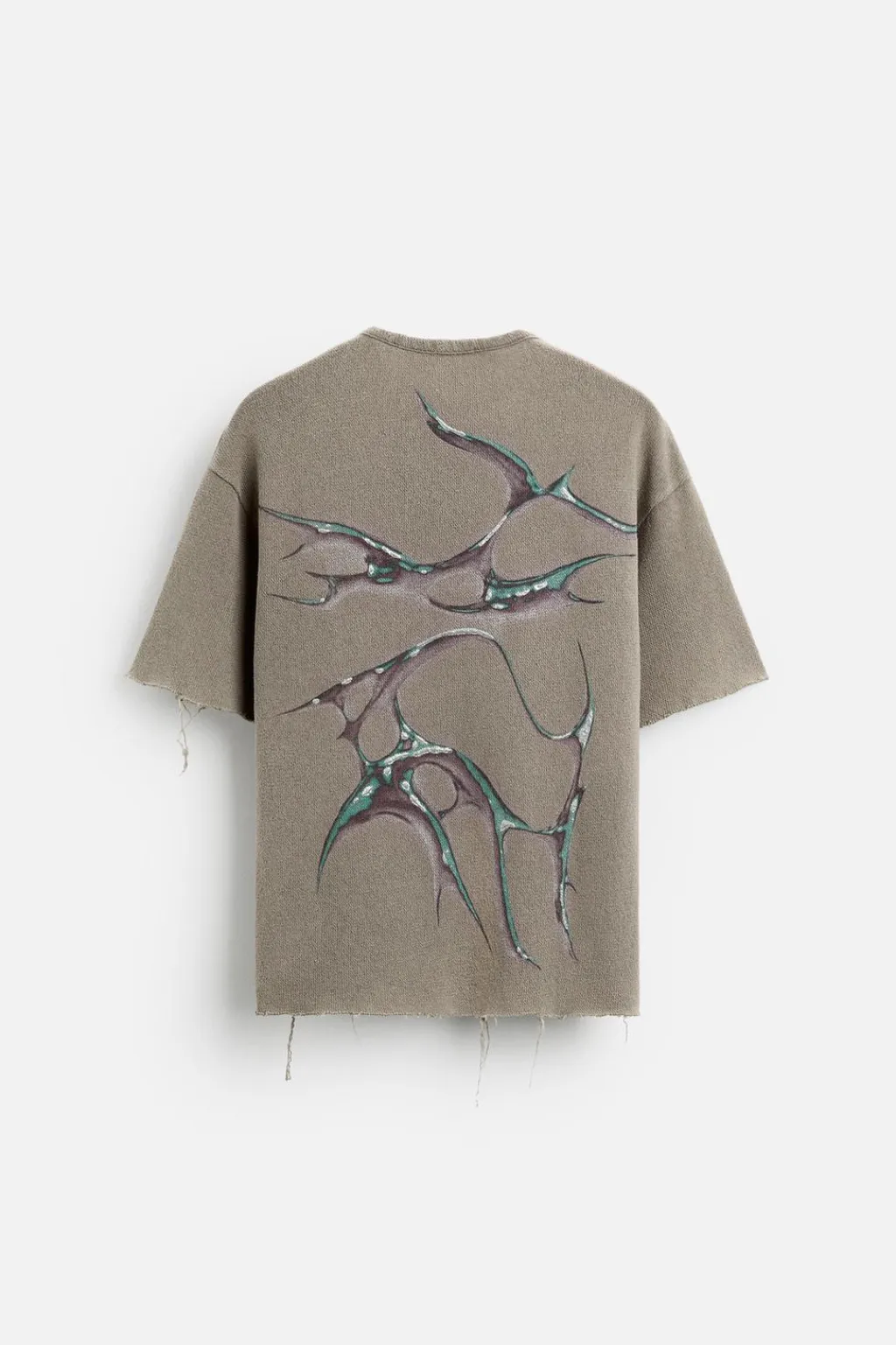 Camiseta relaxed fit tejida en hilatura de algodón. Cuello redondo y manga corta. Estampaciones combinadas a contraste en espalda. Efecto lavado.
