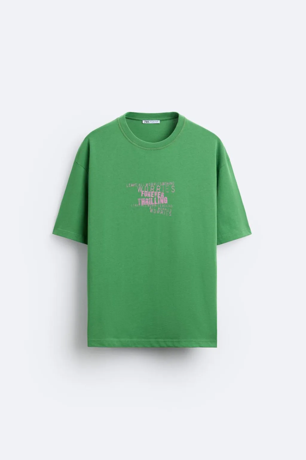 Camiseta relaxed fit. Cuello redondo y manga corta. Estampación de textos combinados a contraste en delantero y espalda