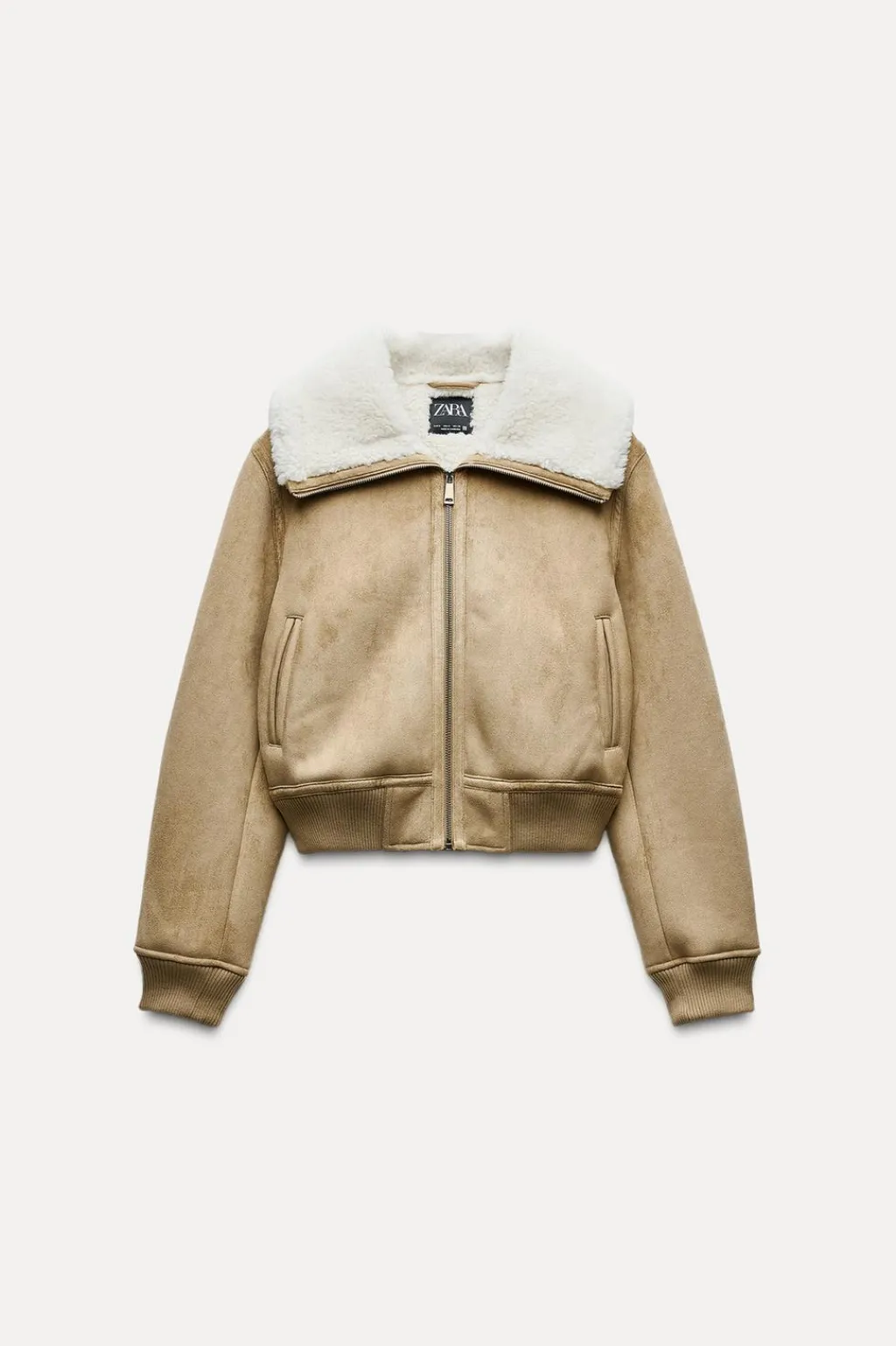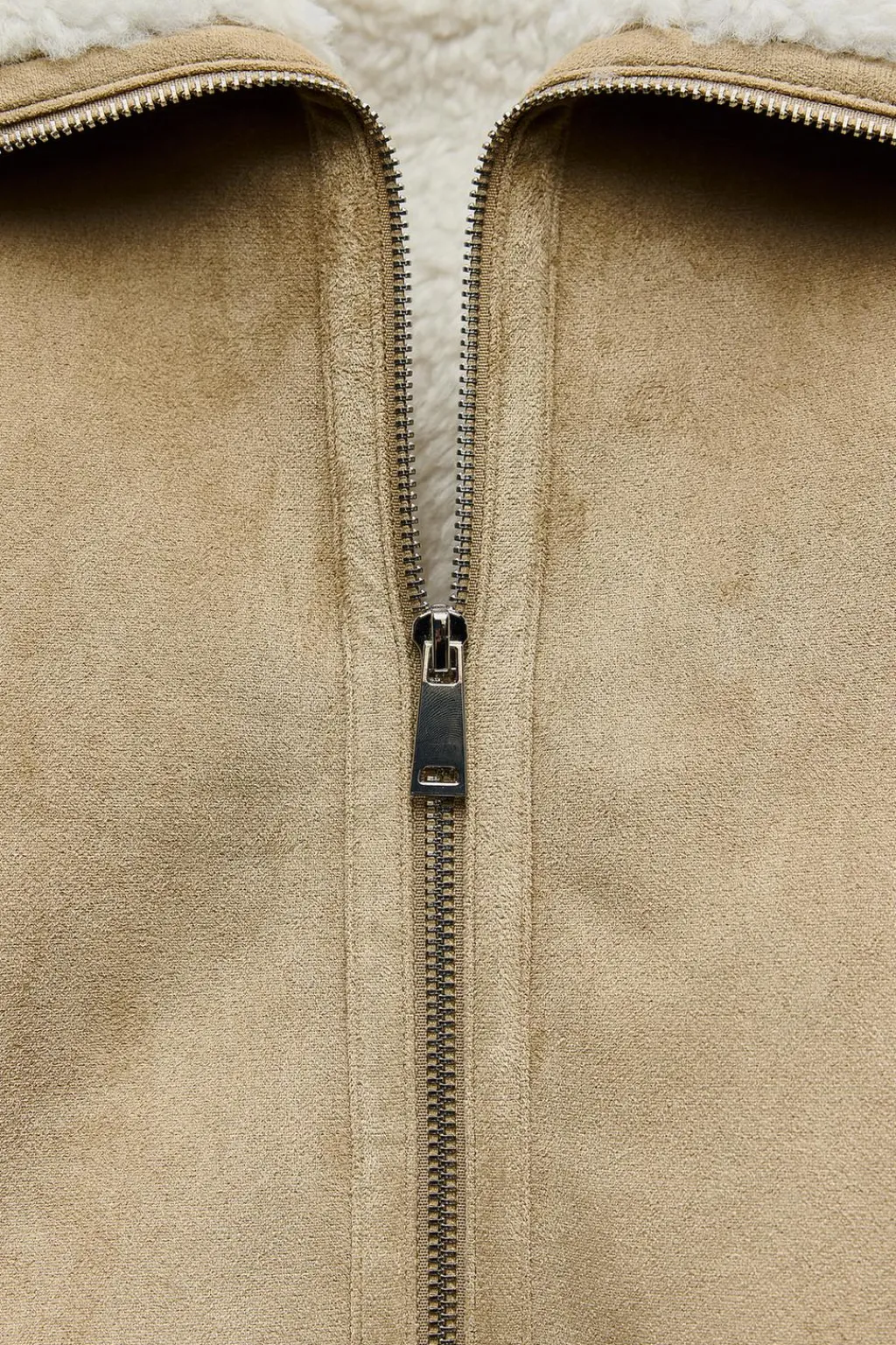Cazadora de cuello solapa y manga larga acabada en puño. Bolsillos delanteros de doble vivo. Detalle de tejido interior combinado en borreguito. Cierre frontal con cremallera. Acabados en rib.