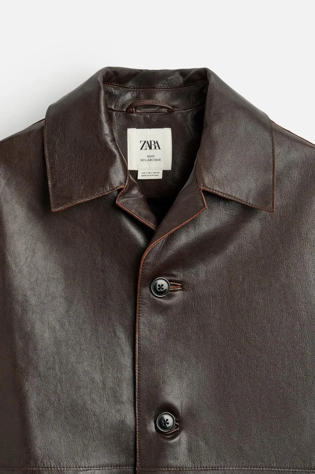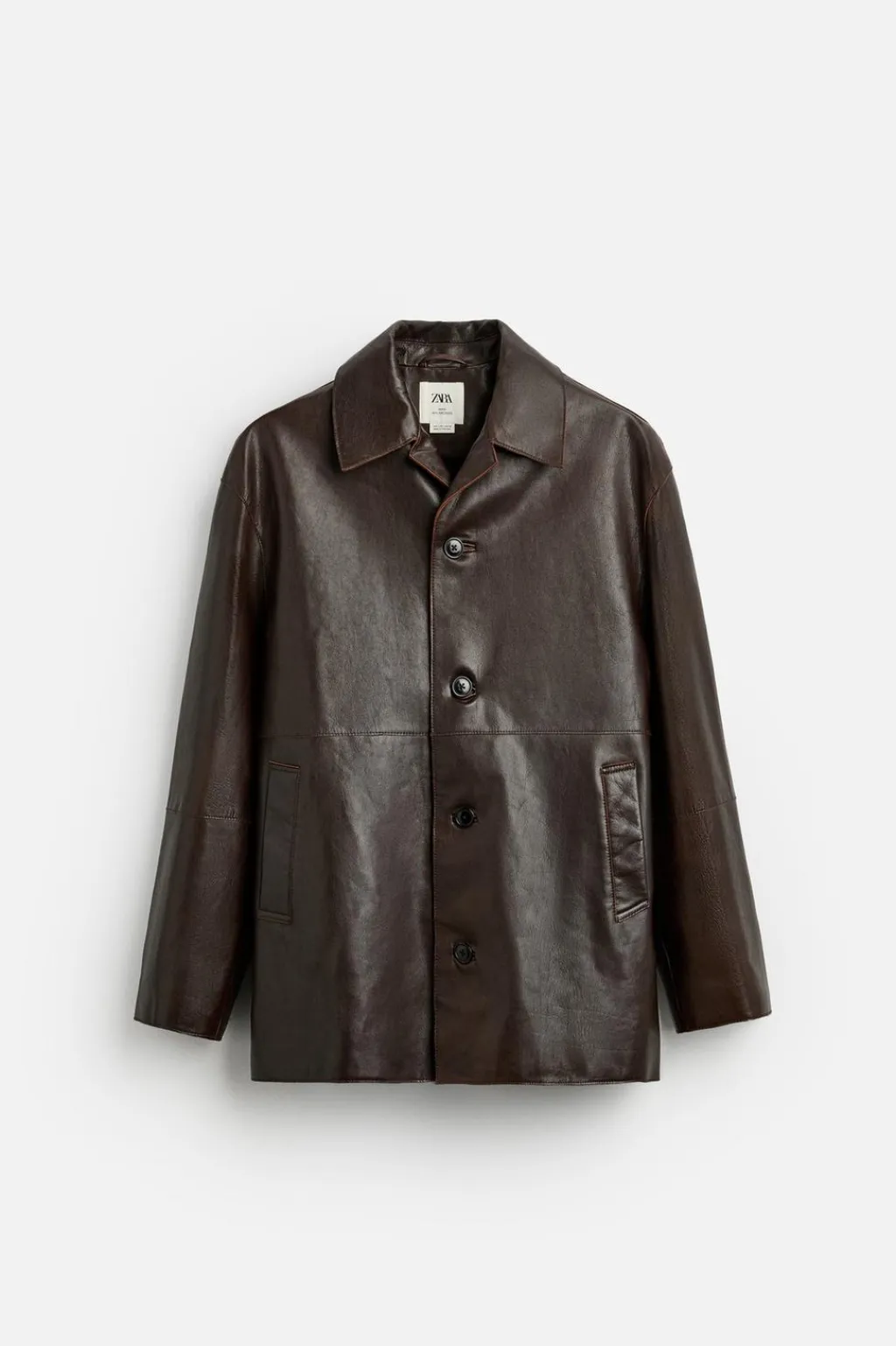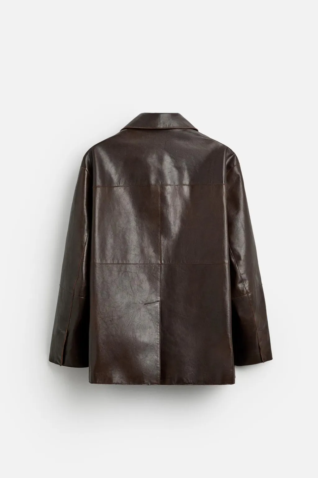 Chaqueta relaxed fit confeccionada en piel. Cuello solapa y manga larga. Bolsillos de vivo en cadera y detalle de bolsillo interior. Bajo con abertura en centro espalda. Acabados irregulares. Cierre frontal de botonadura.