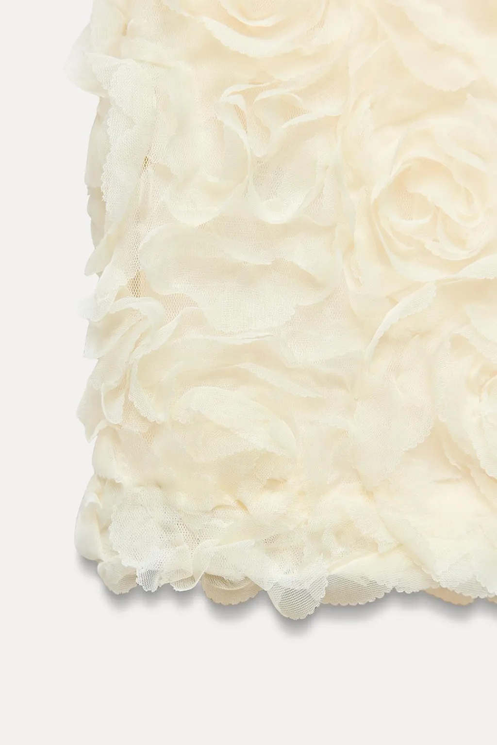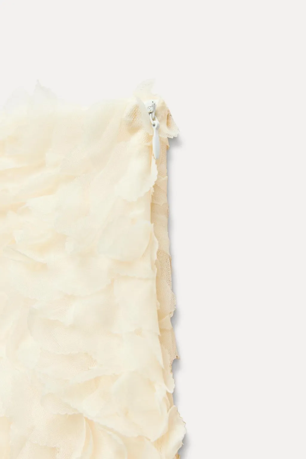 Falda de tiro alto con forro interior. Detalle de tejido en estructura en forma de flor. Cierre lateral con cremallera oculta en costura.