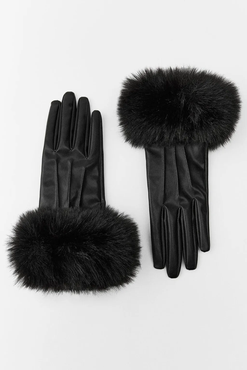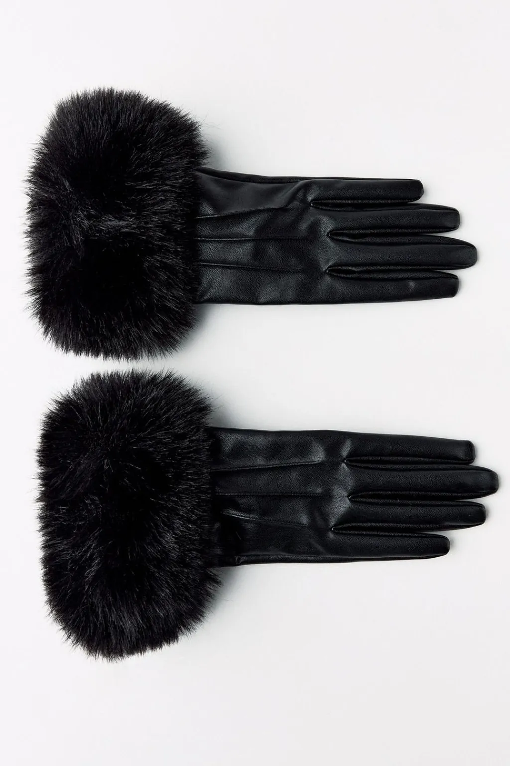 Guantes cortos con acabados en aplicación efecto pelo combinados a tono.