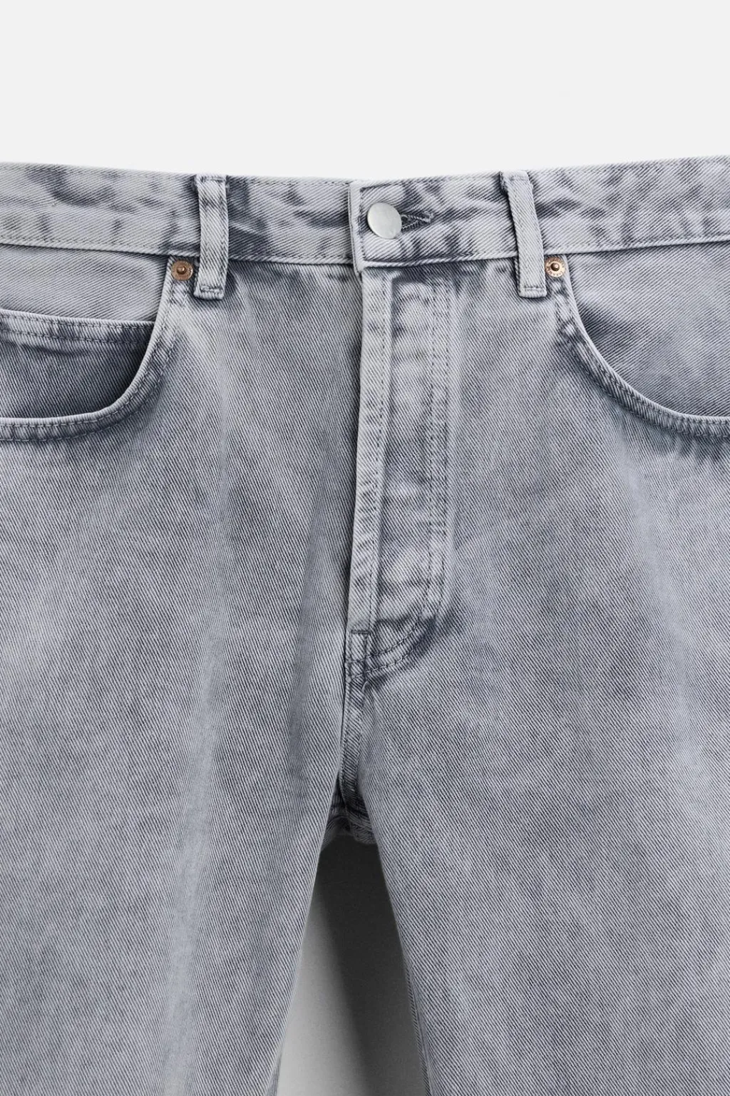 Jeans regular fit. Cinco bolsillos. Efecto lavado. Cierre frontal de botonadura.