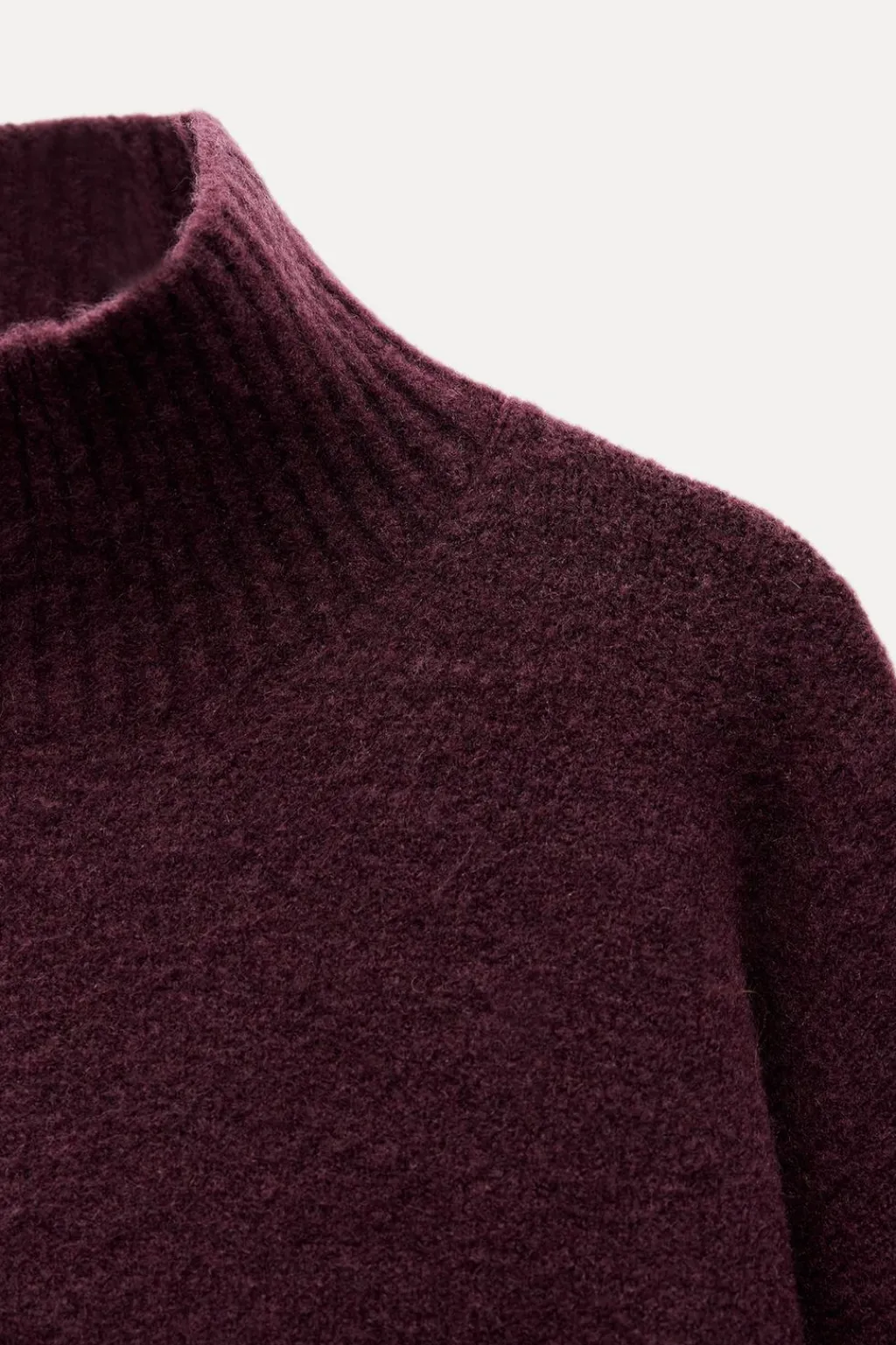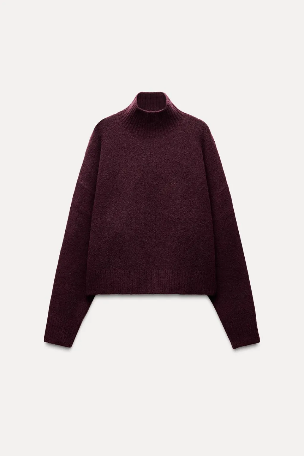 Jersey de punto liso con cuello subido y manga larga. Acabados en rib.