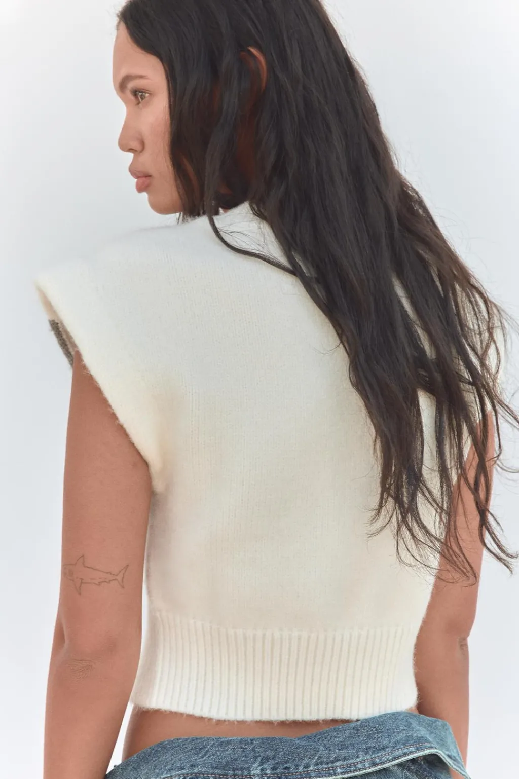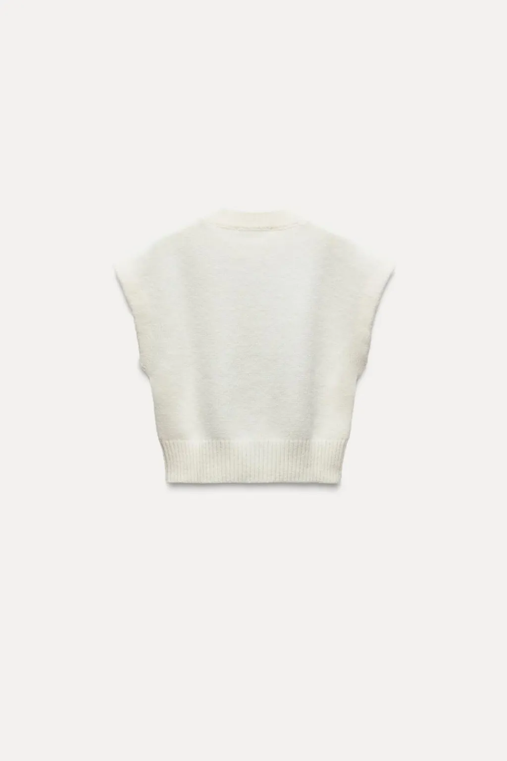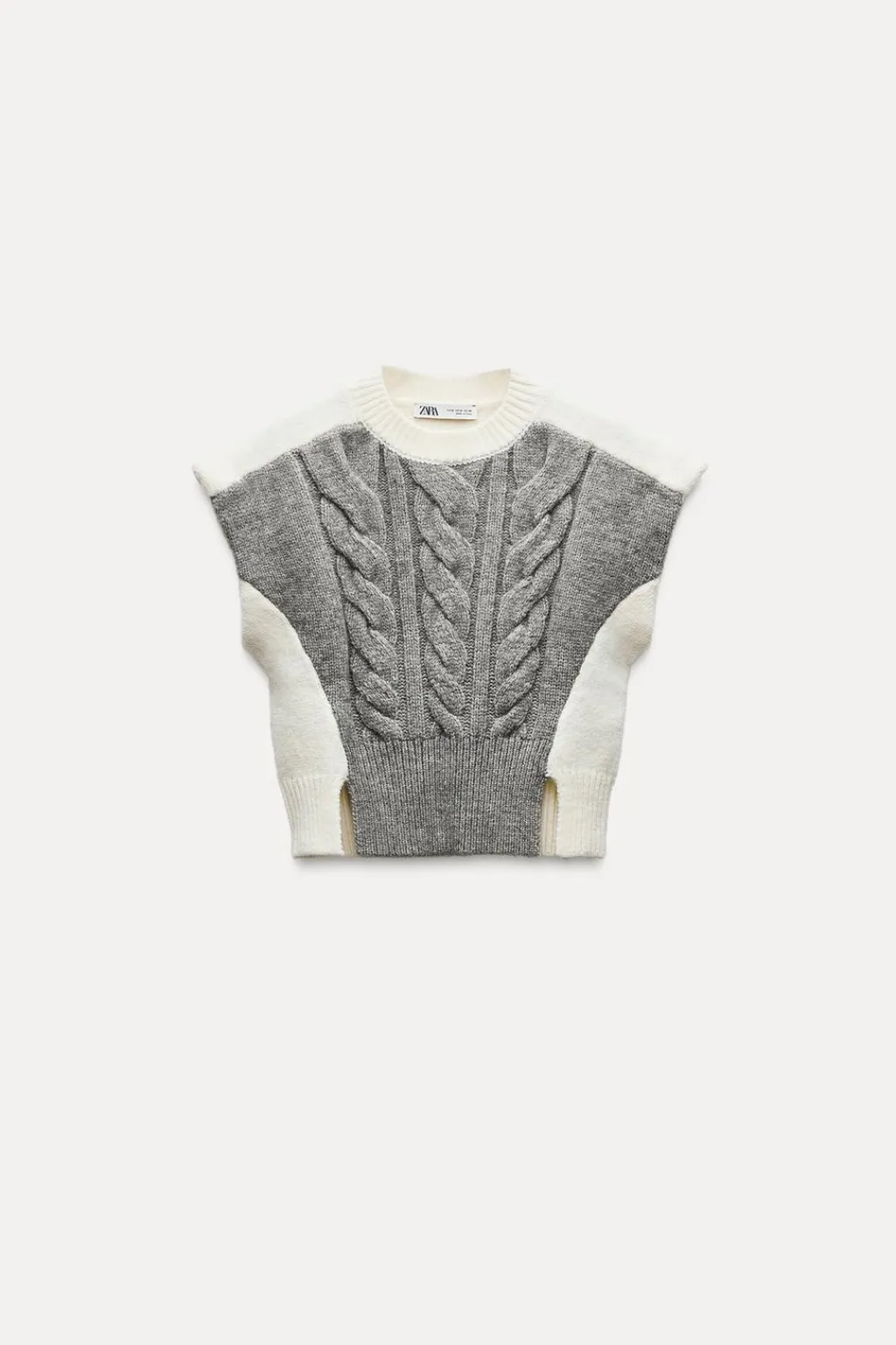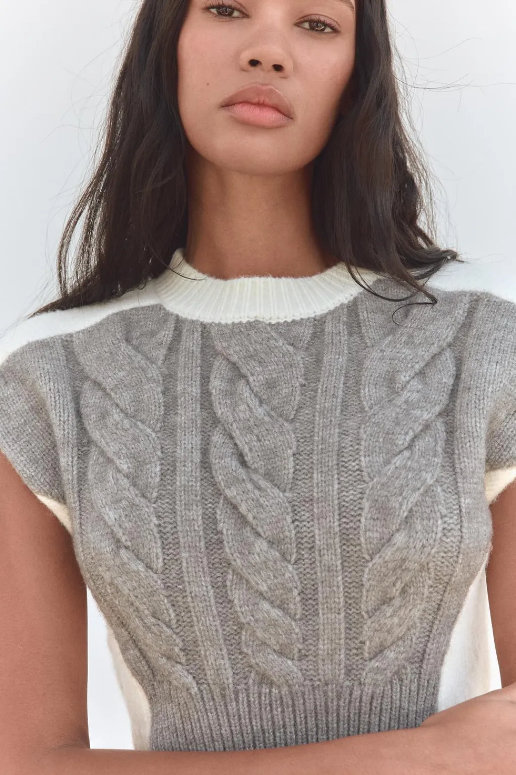 Jersey chaleco de cuello redondo y manga sisa. Detalle de cables delanteros.