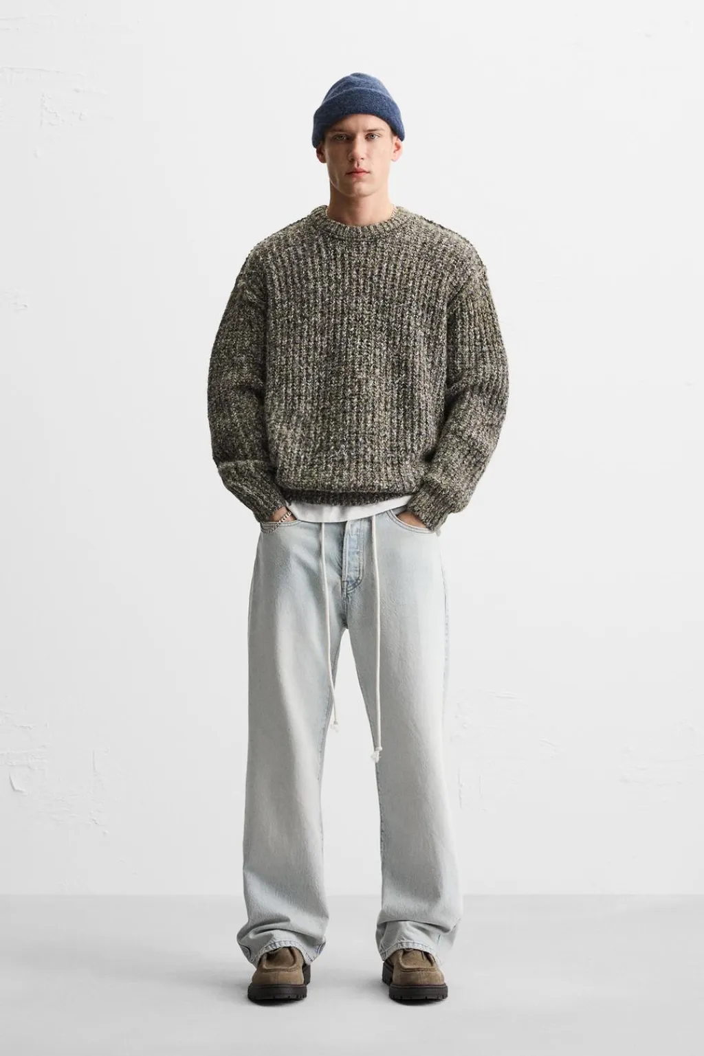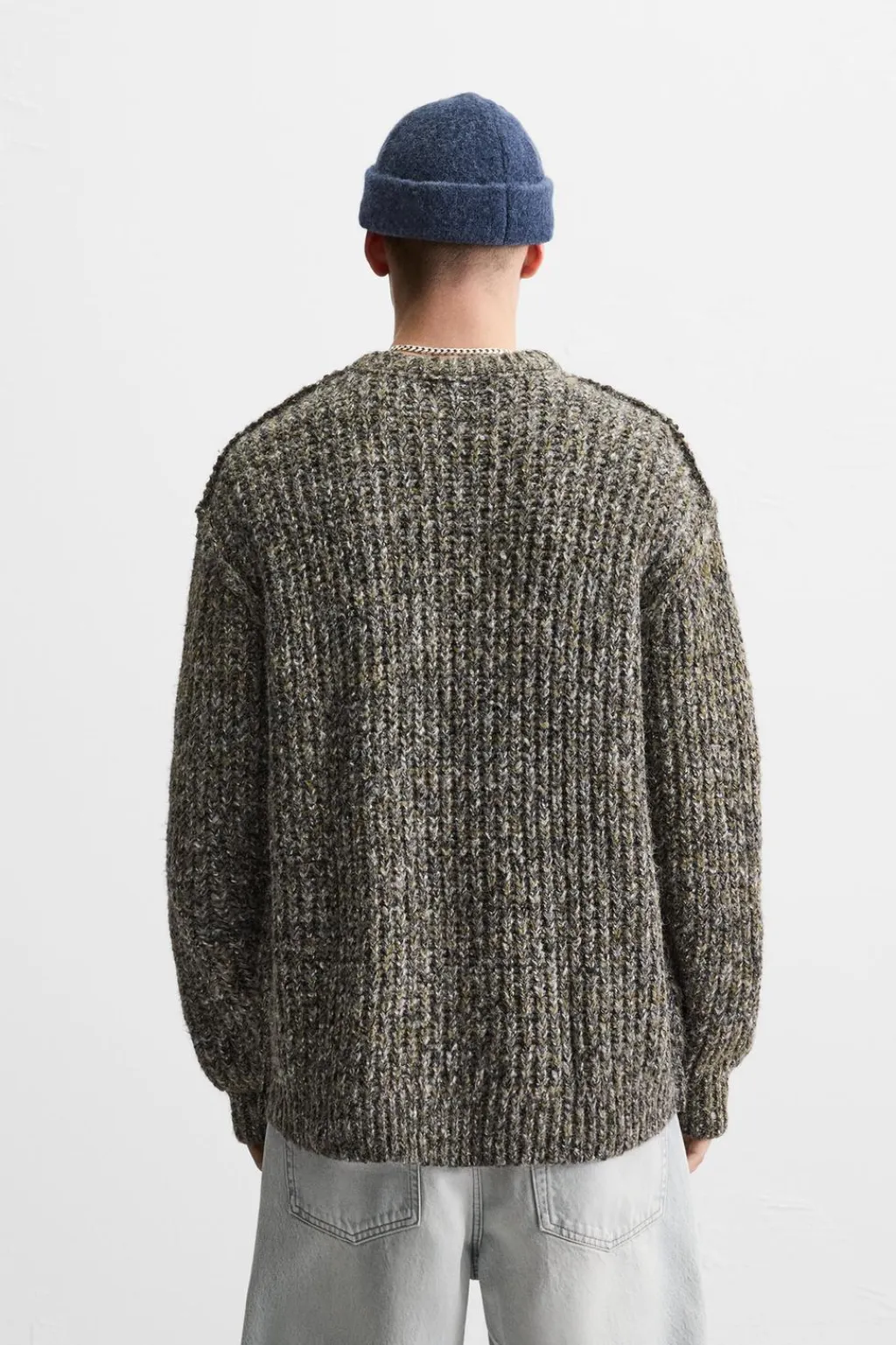 Jersey relaxed fit. Cuello redondo y manga larga. Costuras terminadas con efecto revés. Acabados en rib.