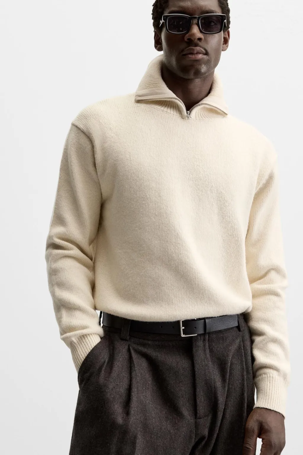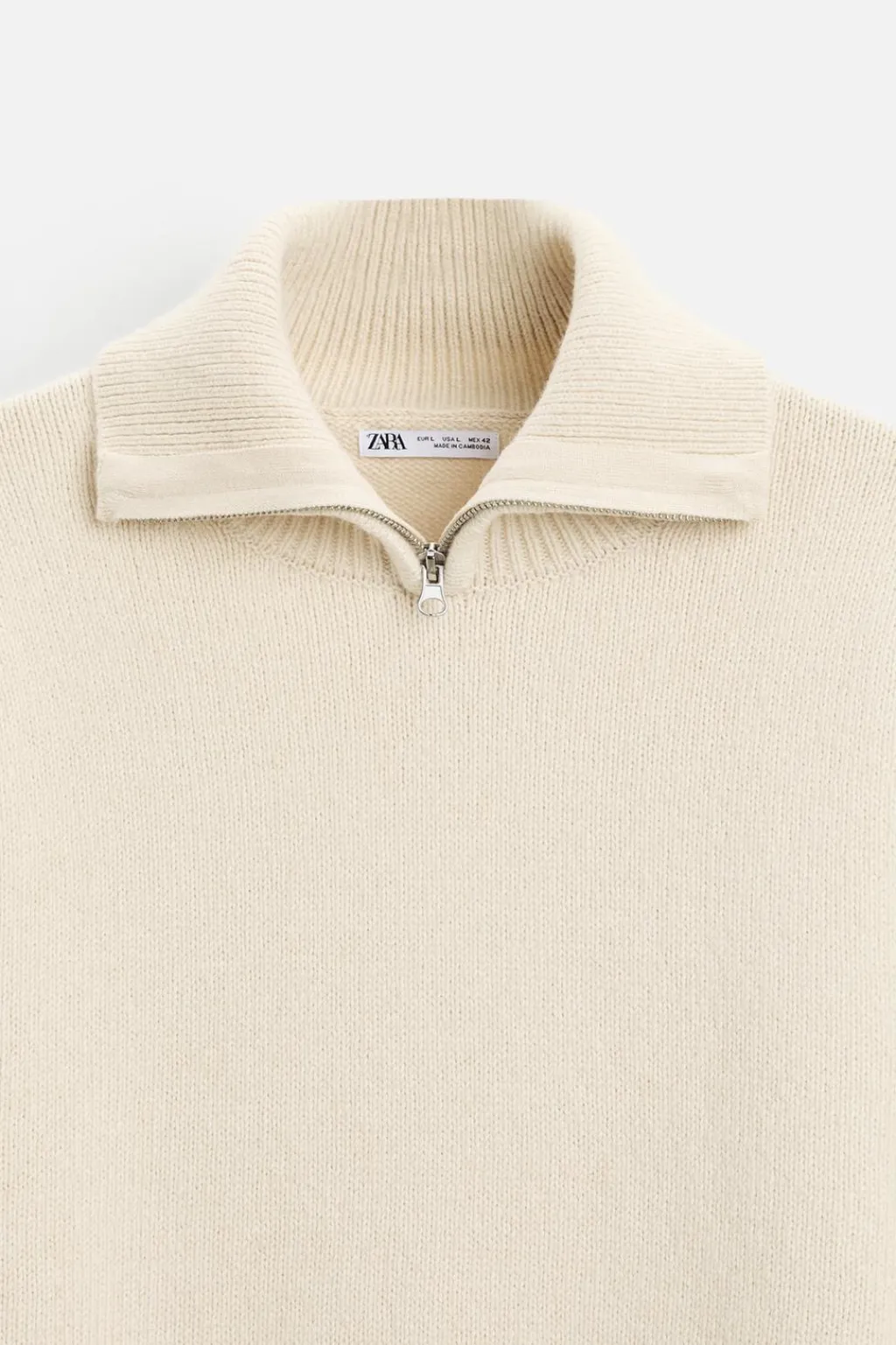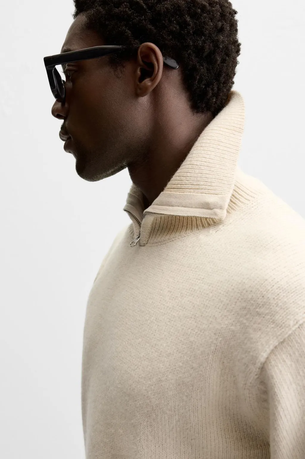 Jersey relaxed fit. Cuello perkins con cierre frontal de cremallera. Manga larga. Acabados en rib.
