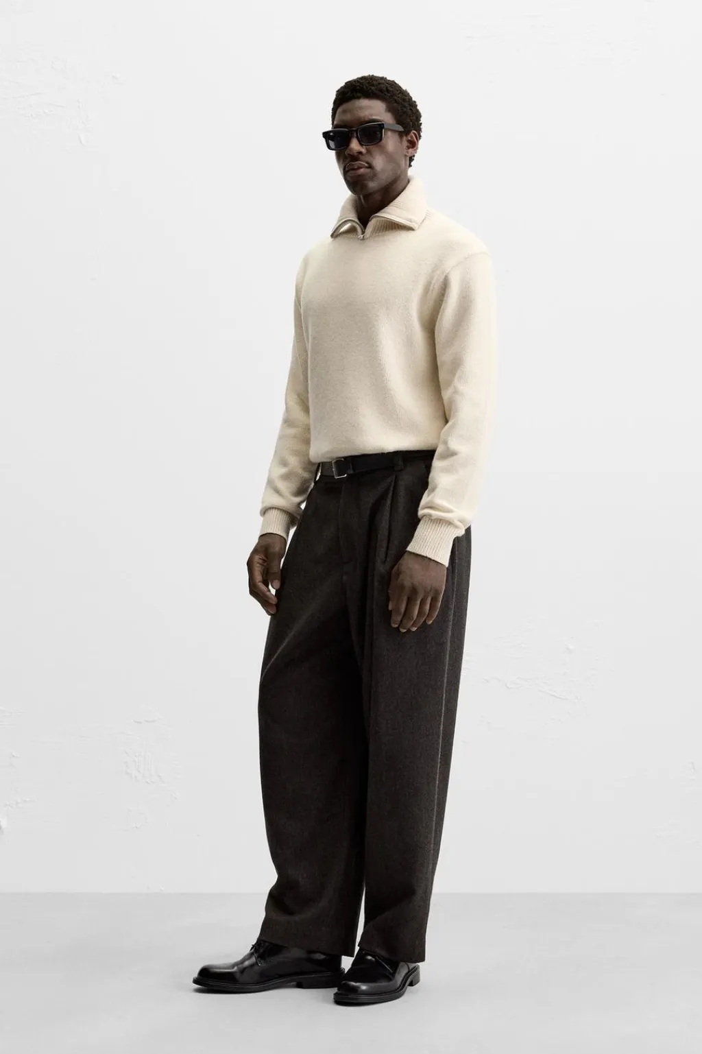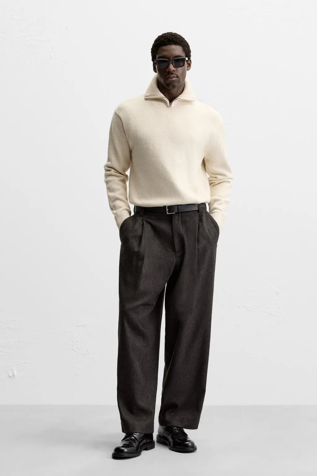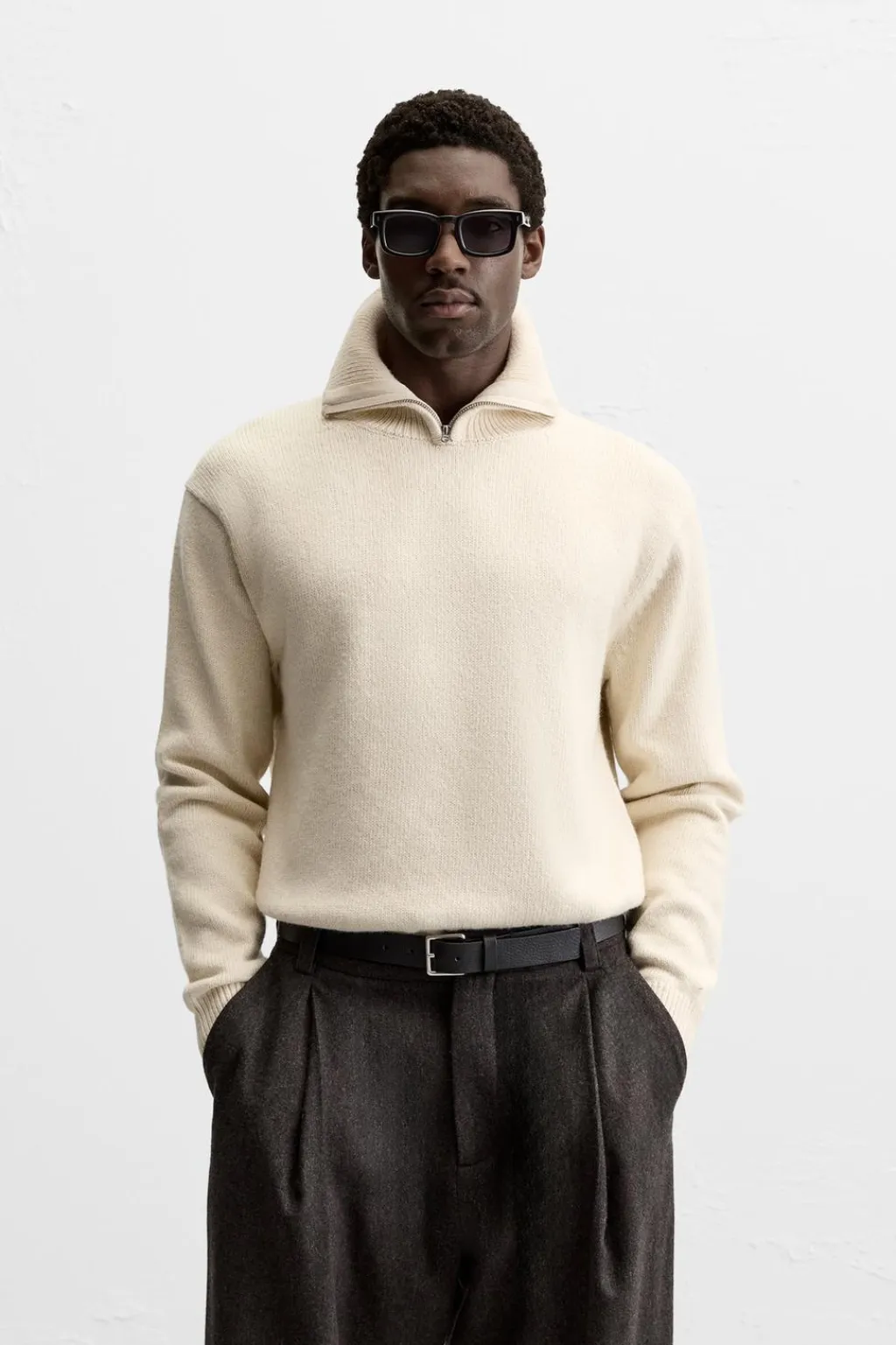 Jersey relaxed fit. Cuello perkins con cierre frontal de cremallera. Manga larga. Acabados en rib.