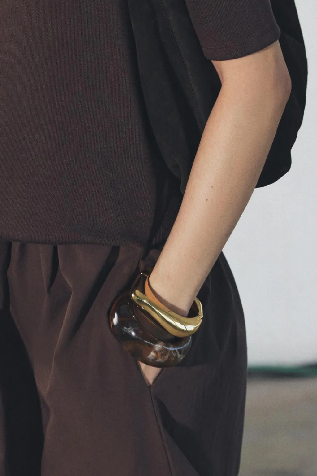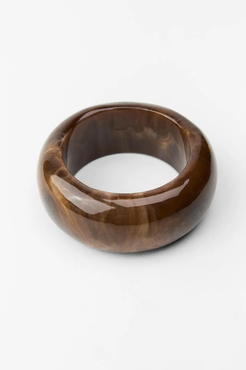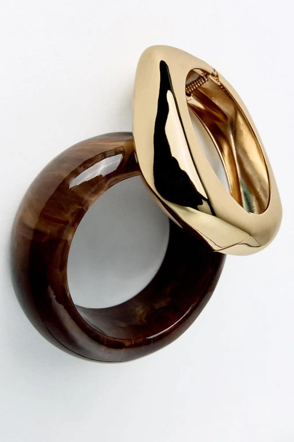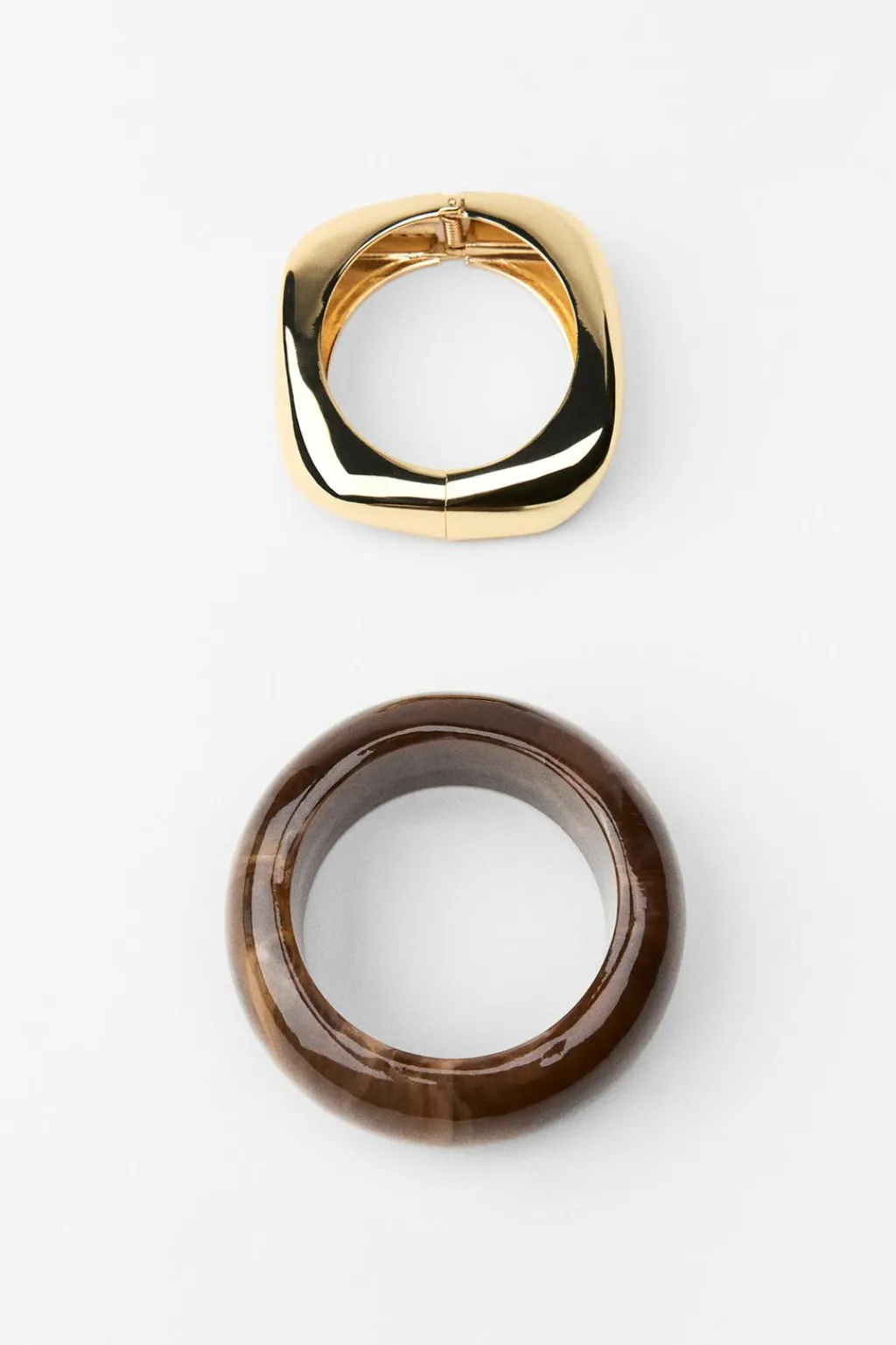 Pack de dos pulseras rígidas una realizada en metal y otra en resina.