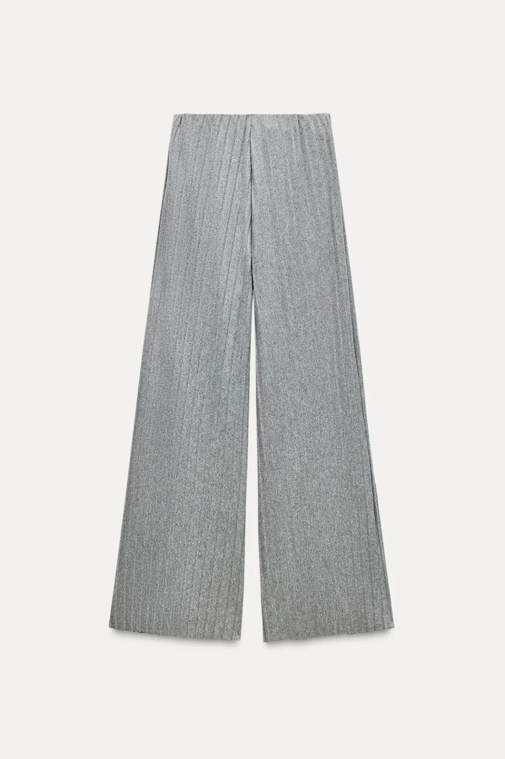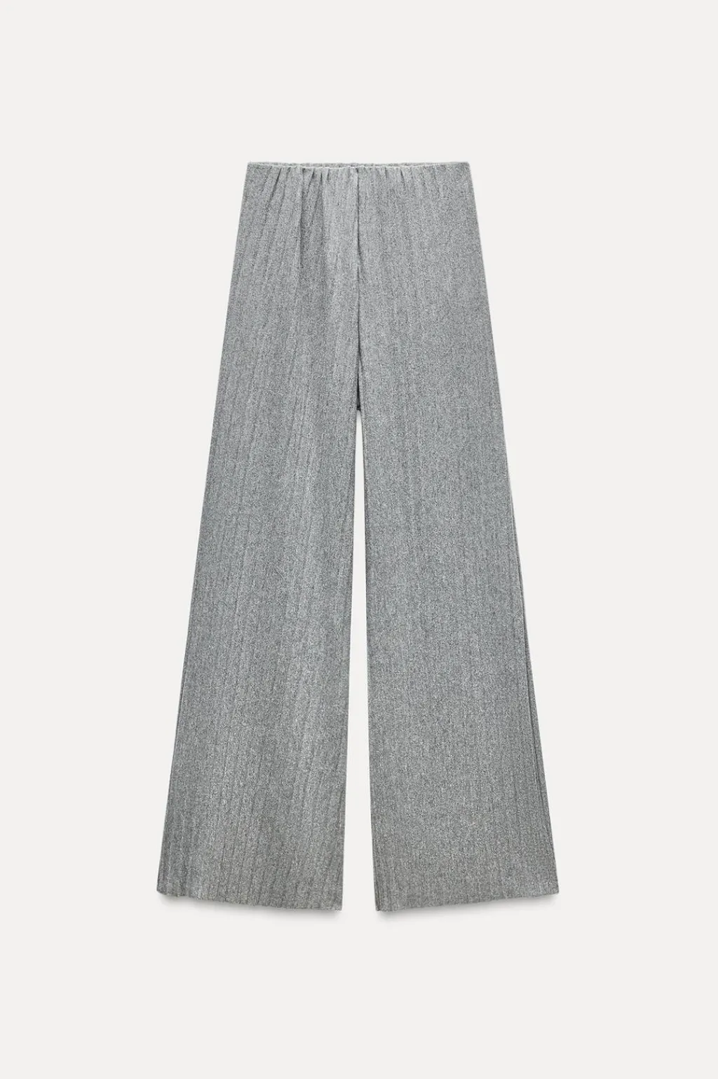 Pantalón confeccionado en tejido tipo punto. Tiro alto y cintura conelástico interior. Pierna ancha.