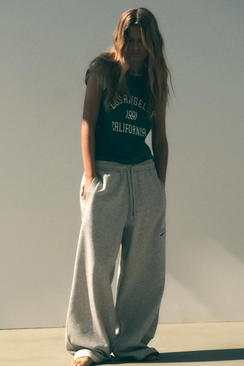 Pantalón de tiro medio con cintura elástica ajustable con cordones. Bolsillo laterales. Detalle de texto bordado combinado a contraste en delantero.
