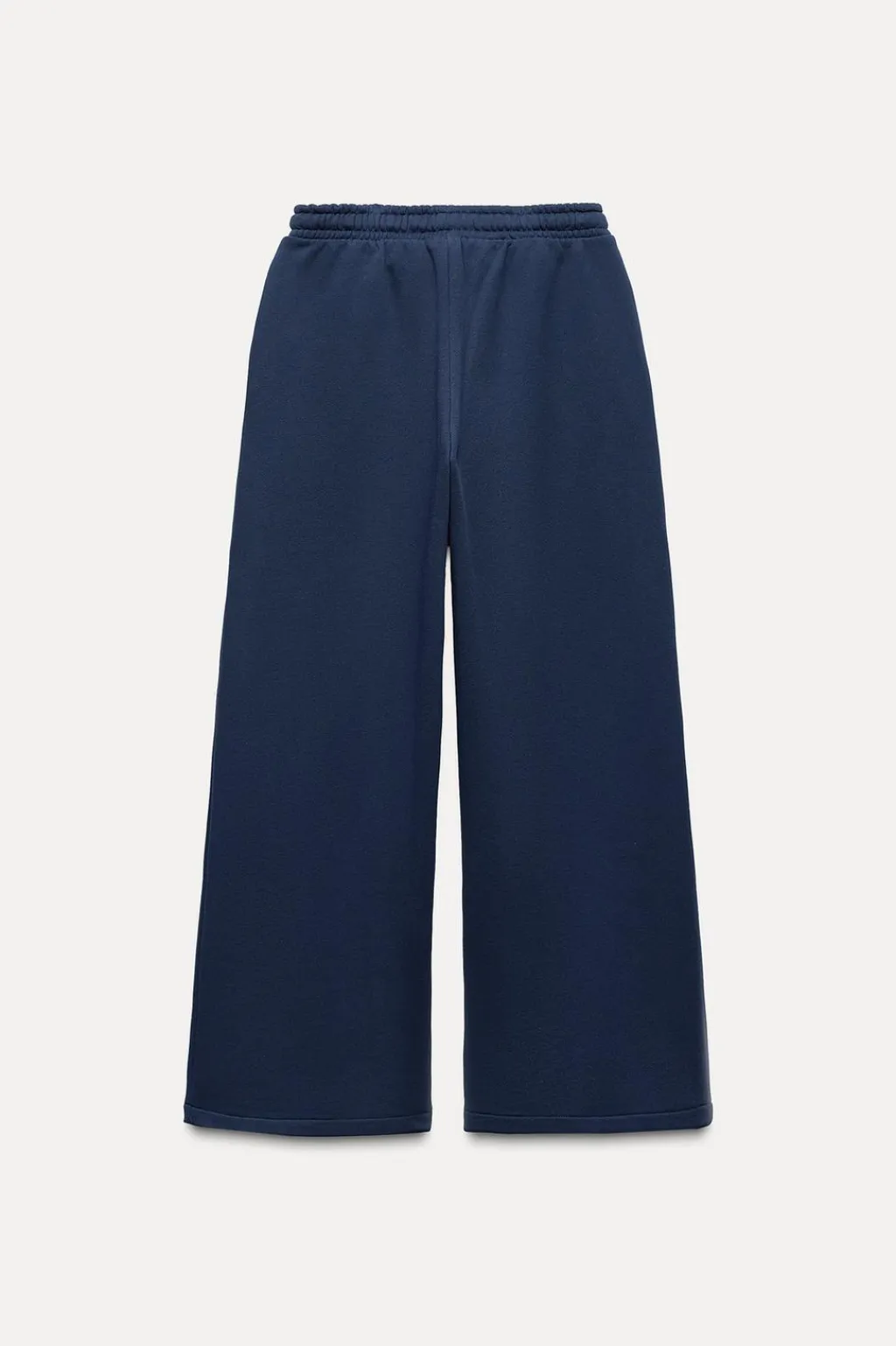 Pantalón de tiro alto con cintura elástica ajustable con cordones. Bolsillos laterales. Texto y números combinados a contraste.