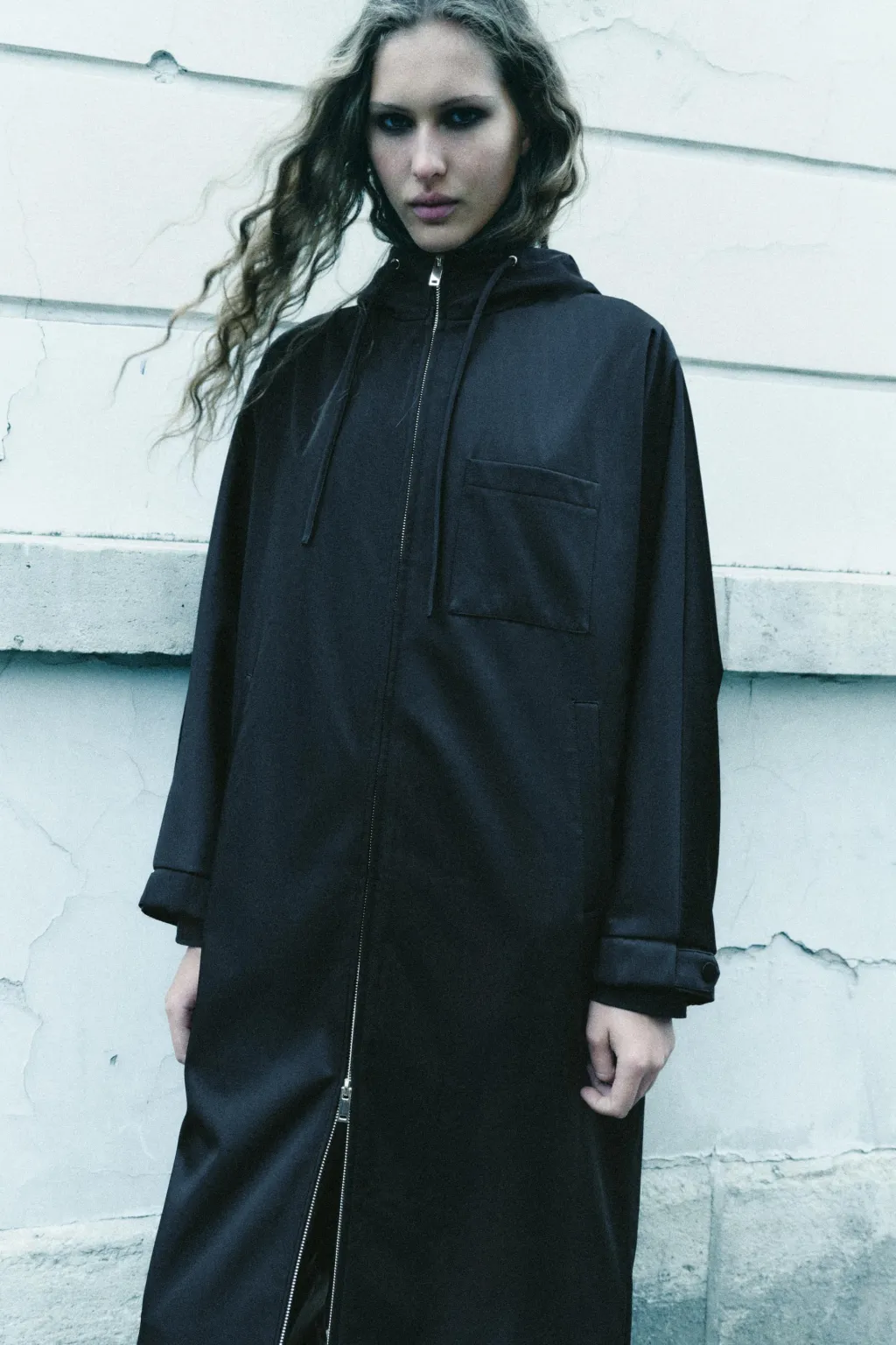 Parka larga con capucha ajustable con cordones. Manga larga acabada en puño elástico. Bolsillos laterales y de plastrón en pecho. Bajo ajustable con cordón elástico y stopper. Cierre frontal con cremallera metálica.