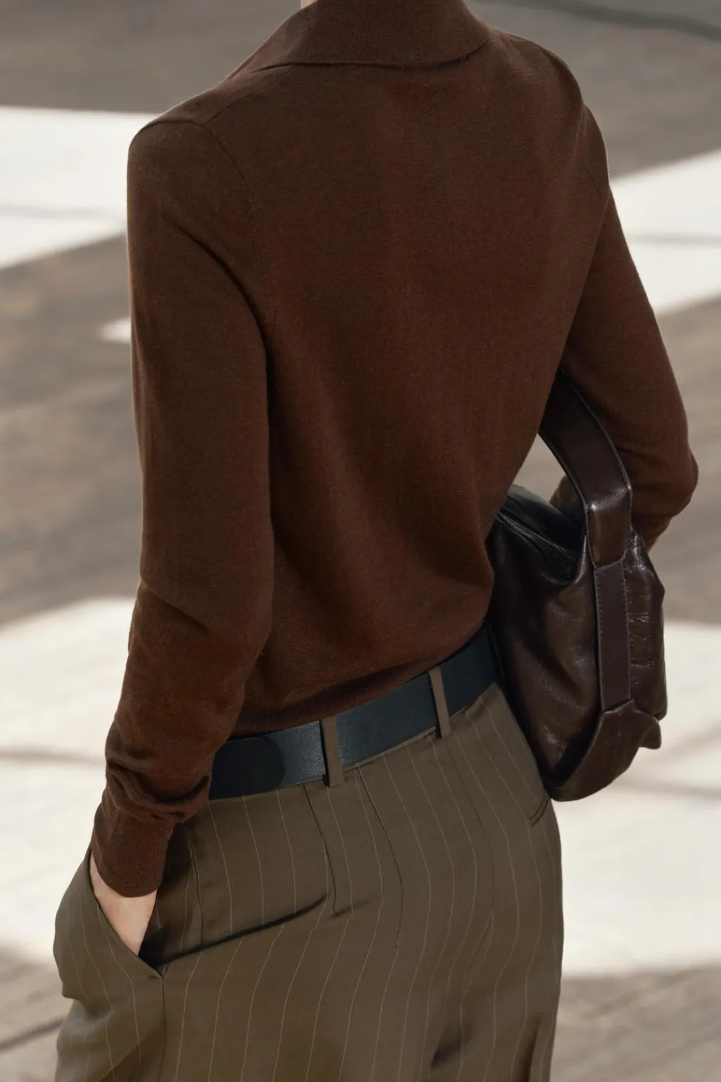 Polo liso confeccionado con lana. Cuello solapa y manga larga. Bolsillo delantero de plastrón. Botones delanteros.