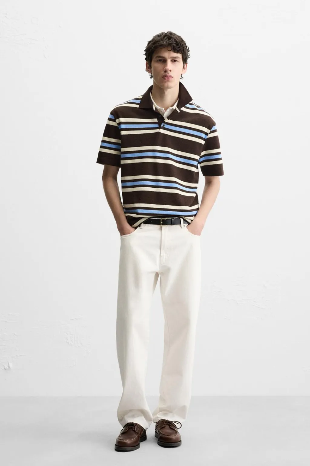 Polo regular fit confeccionado en tejido compacto con estructura piqué. Cuello solapa con cierre frontal de botonadura y manga corta. Bajo con aberturas laterales.