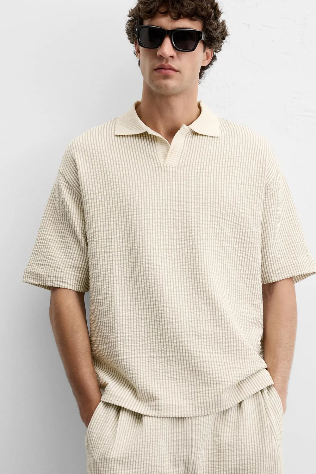 Polo relaxed fit. Cuello solapa con abertura frontal. Manga corta.