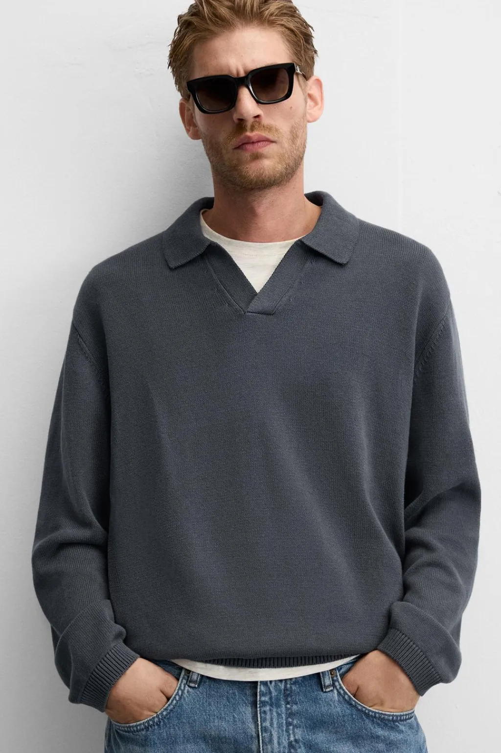 Polo de punto tejido en hilatura de algodón. Cuello solapa y abertura frontal. Manga larga. Acabados en rib.