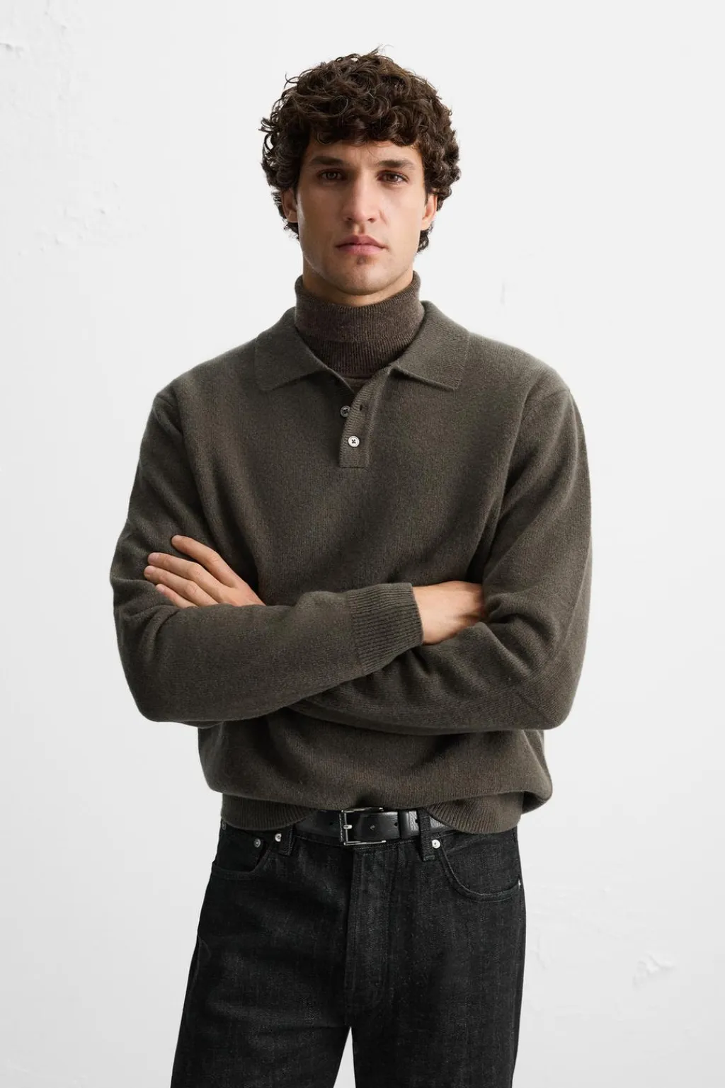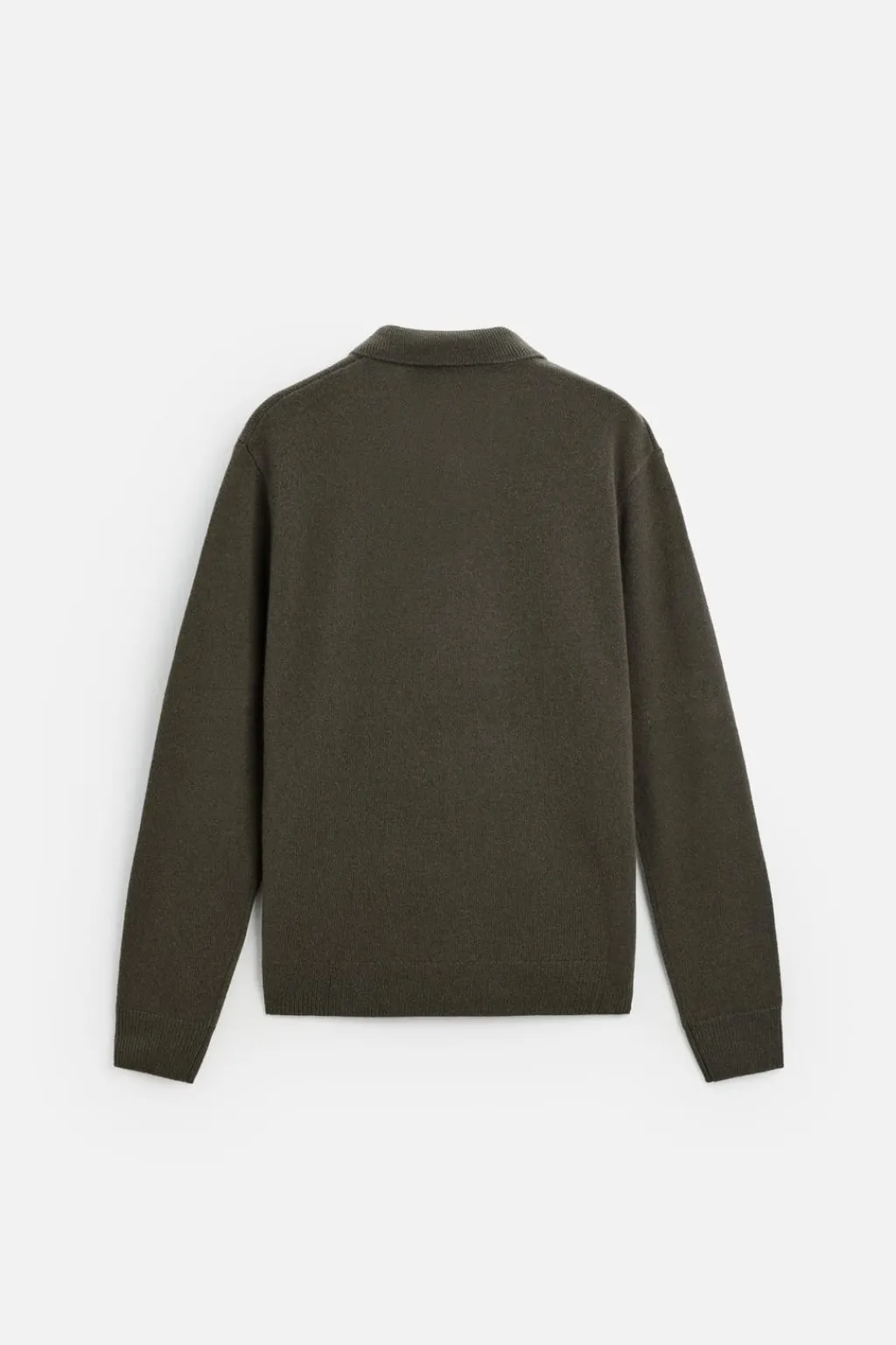 Polo de punto relaxed fit tejido en hilatura de lana. Cuello solapa con cierre frontal de botonadura. Manga larga. Acabados en rib.