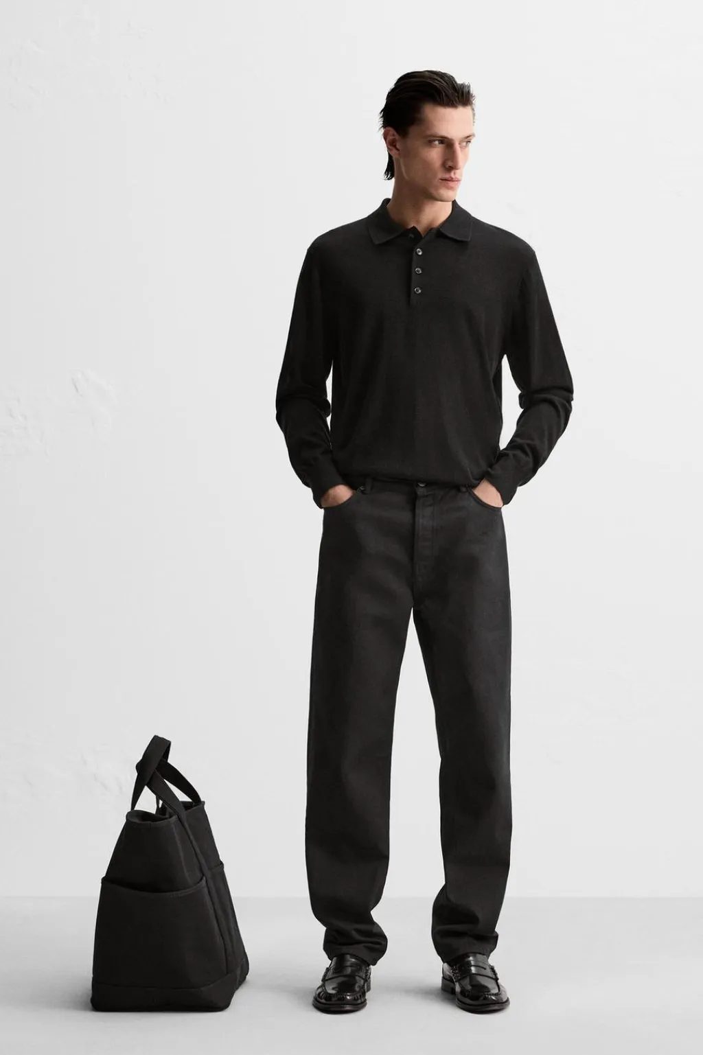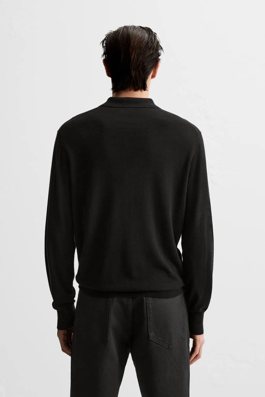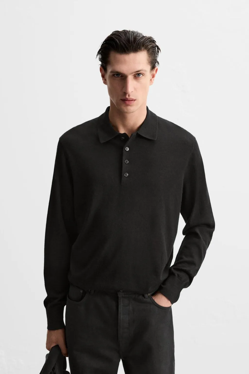 Polo regular fit de punto ligero tejido en hilatura con mezcla de de lana merino y cashmere. Cuello solapa con cierre frontal de botonadura y manga larga. Acabados en rib.