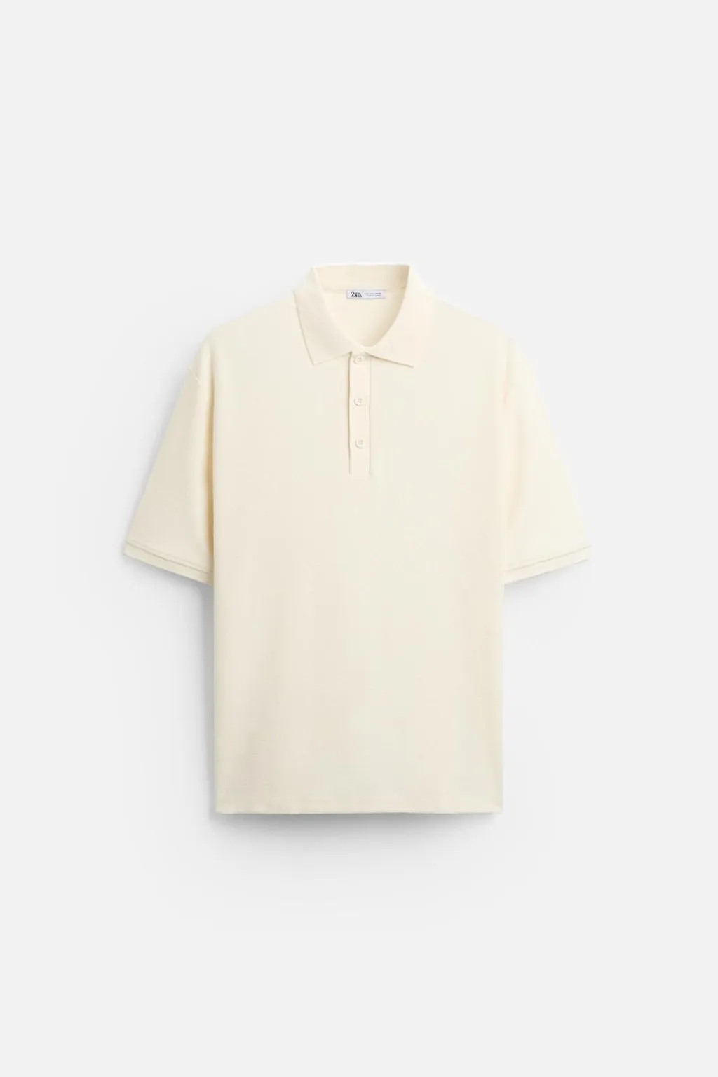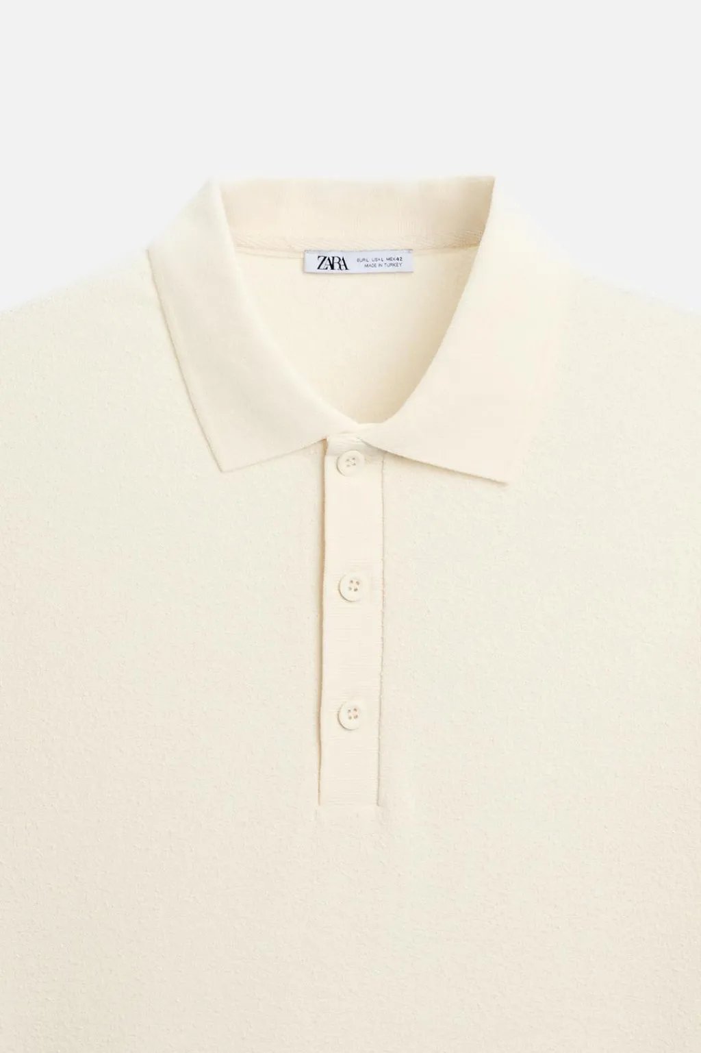 Polo confeccionado en tejido con textura bouclé. Cuello solapa con cierre frontal de botonadura. Manga corta.