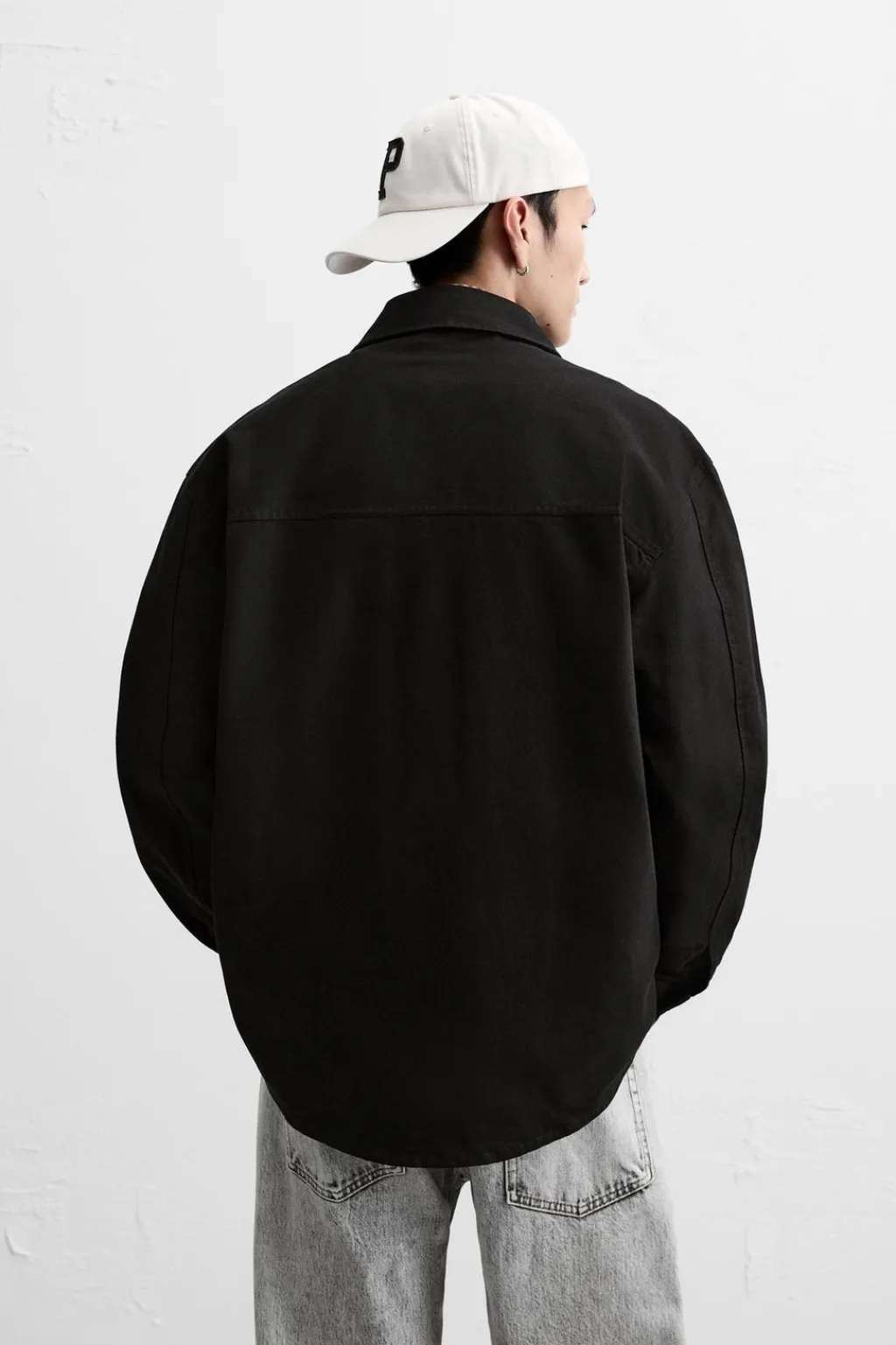 Sobrecamisa relaxed fit confeccionada en tejido de algodón. Cuello solapa y manga larga acabada en puño con botón. Detalle de bolsillo plastrón en pecho. Cierre frontal de botonadura.