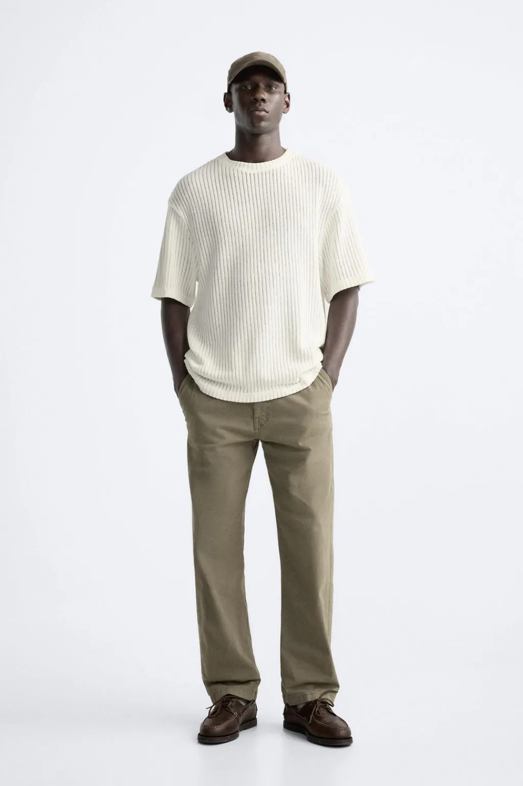 Sudadera relaxed fit confeccionada en tejido con estructura abierta. Cuello redondo y manga corta.