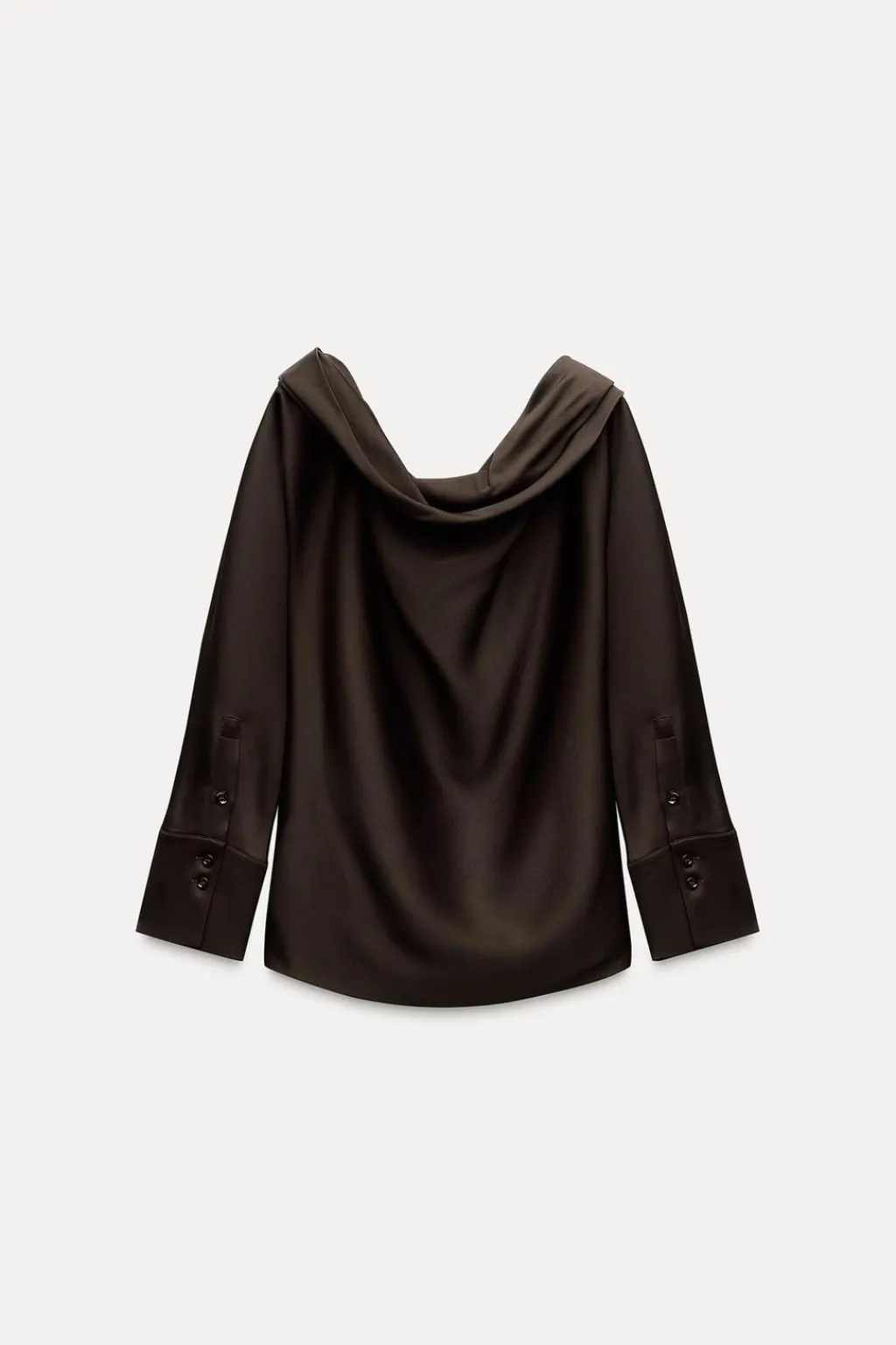 Top asimétrico confeccionado en hilatura con viscosa 27%. Escote asimétrico y manga larga acabada en puño.