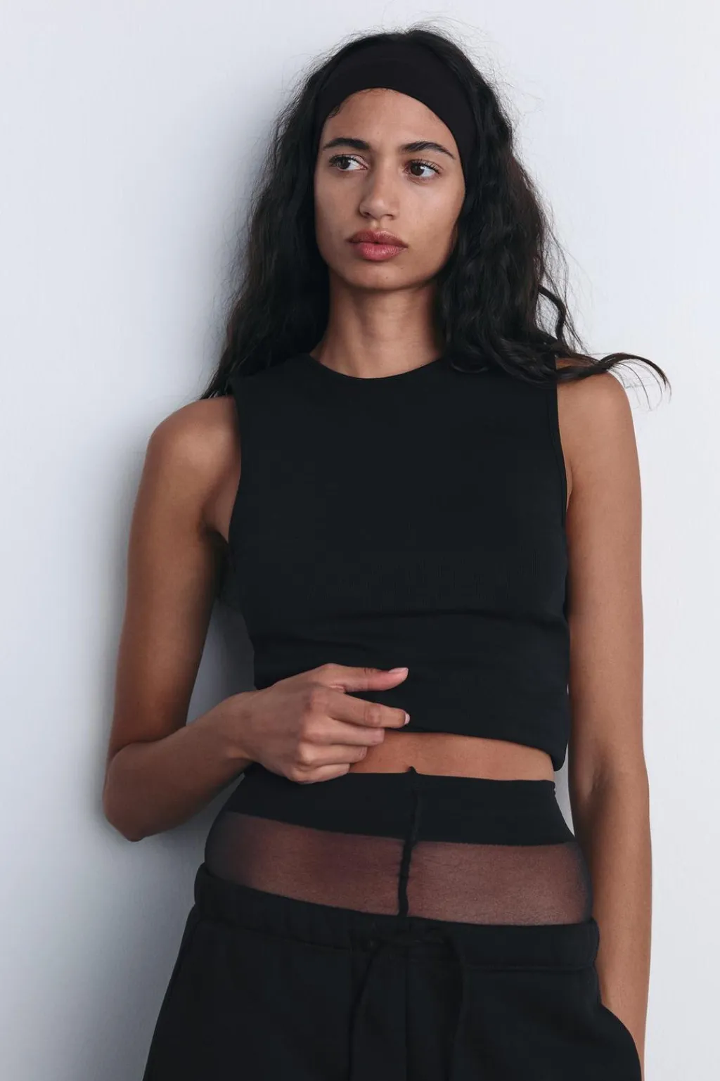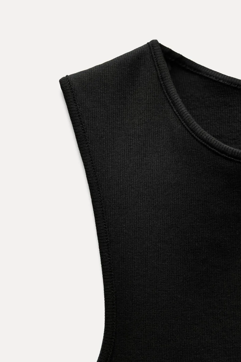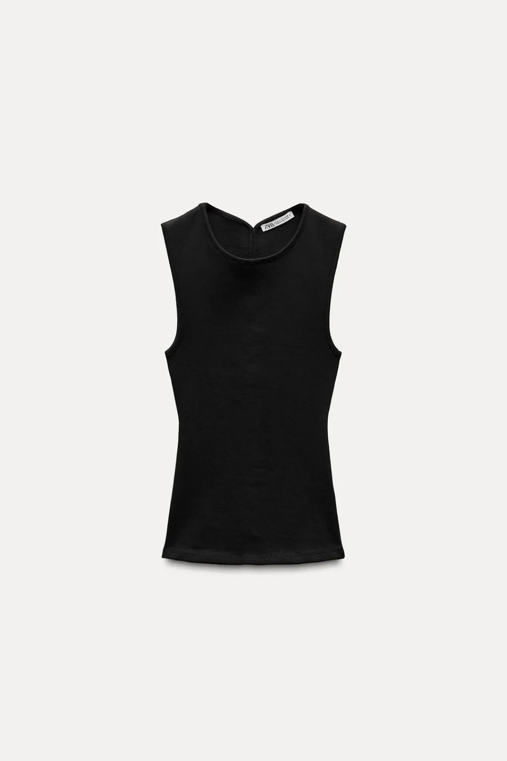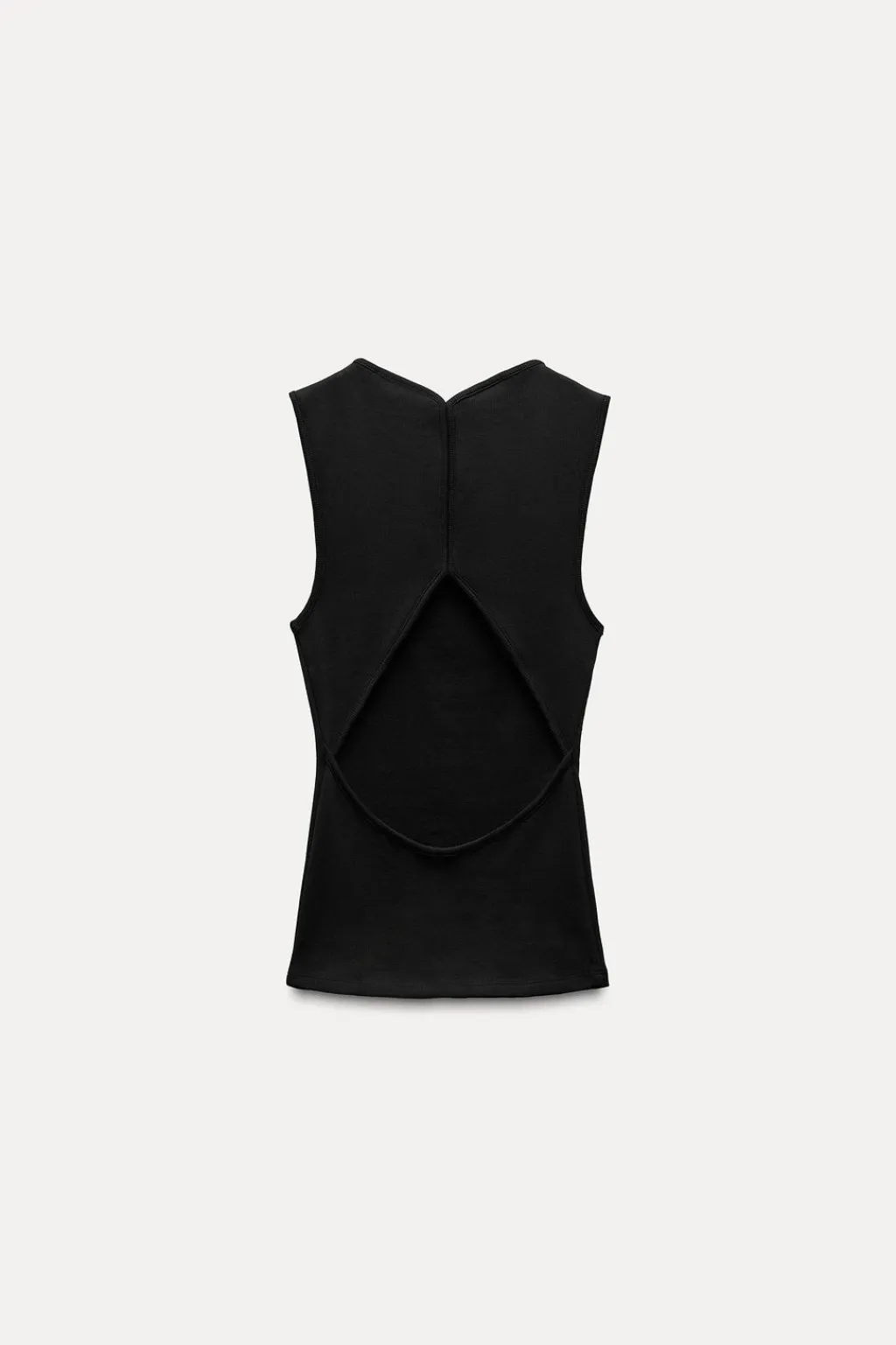 Top de cuello redondo y manga sisa. Detalle de abertura en espalda.