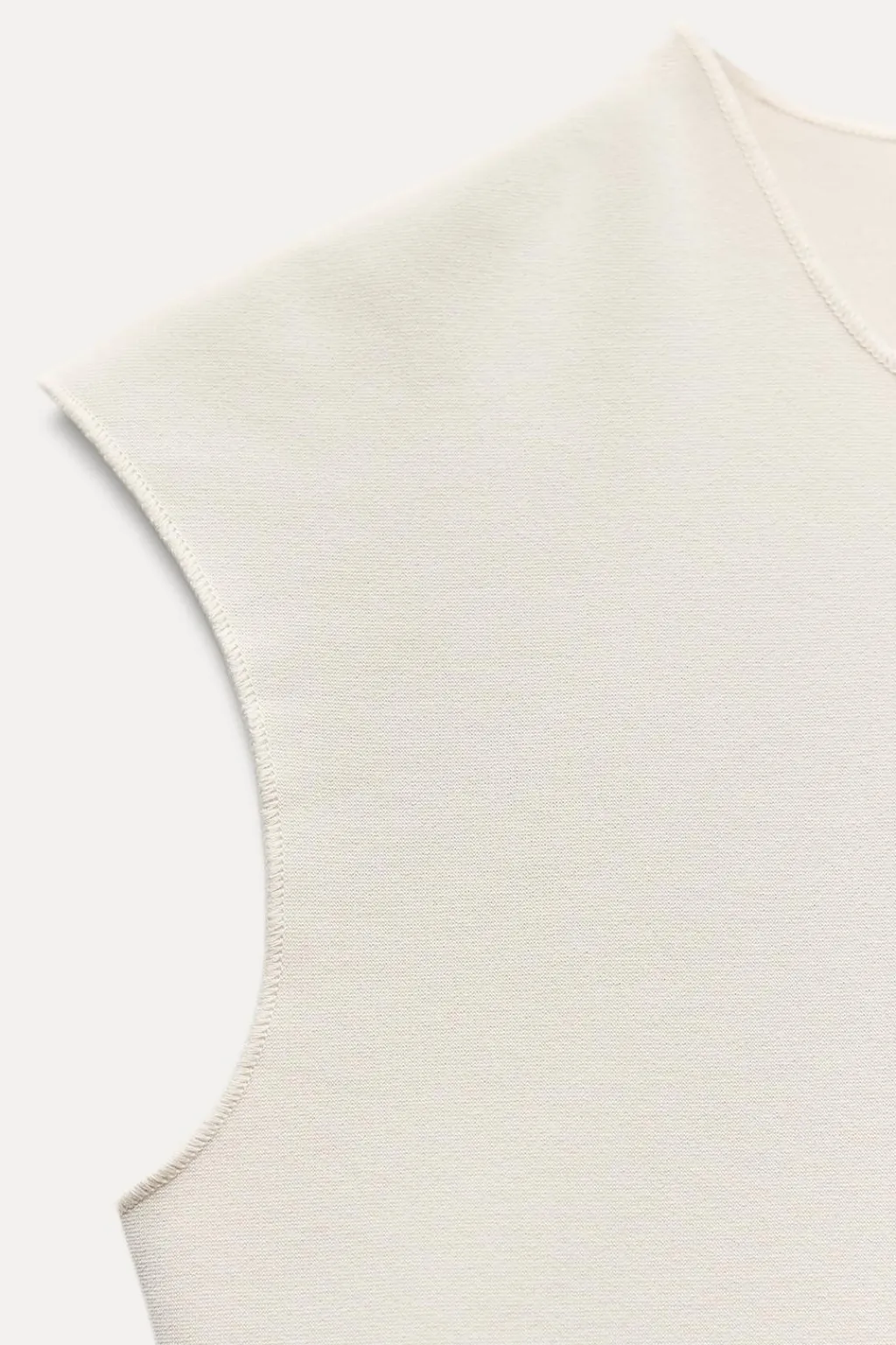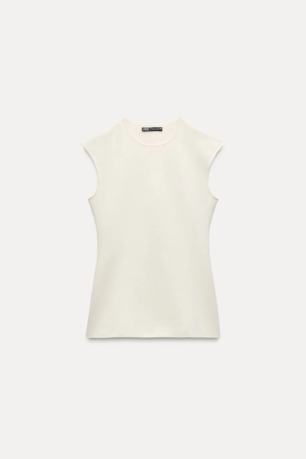 Top confeccionado en tejido elástico. Cuello redondo y manga muy corta caída.