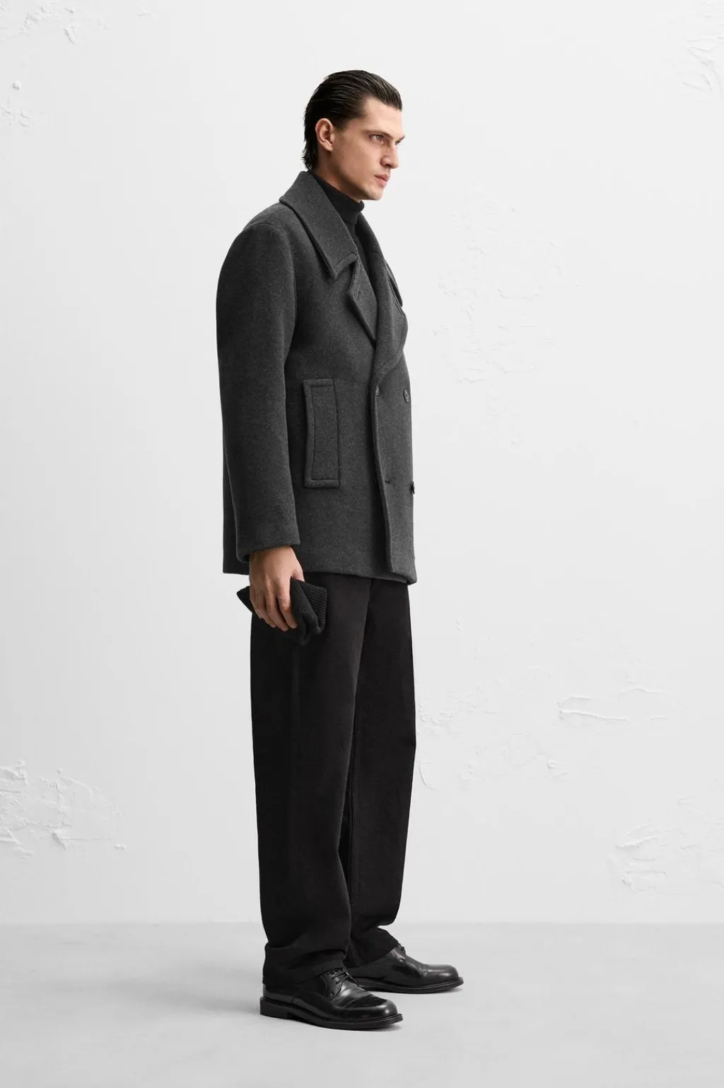 Abrigo regular fitconfeccionado en tejido con mezcla de lana de origen italiano.