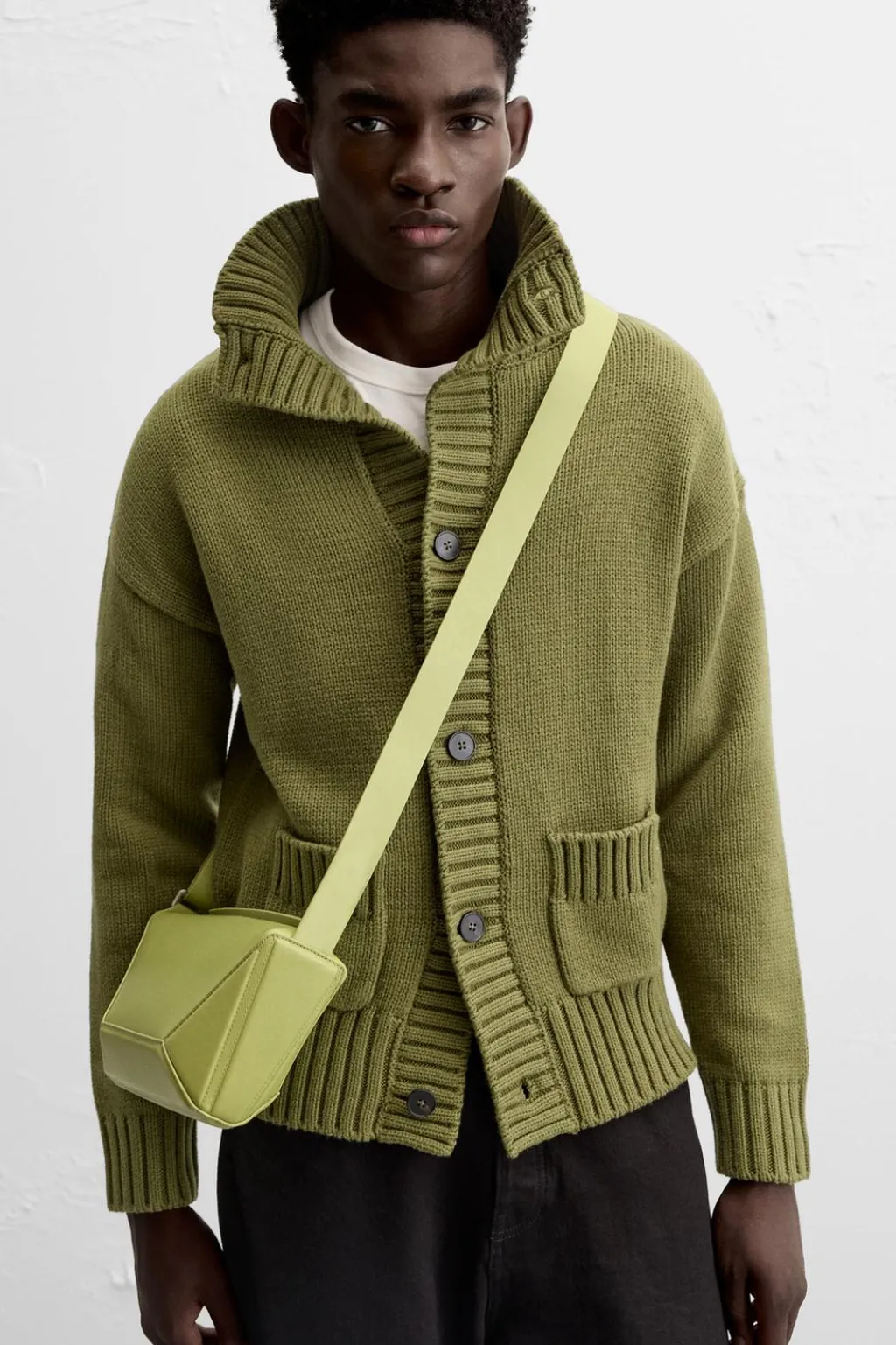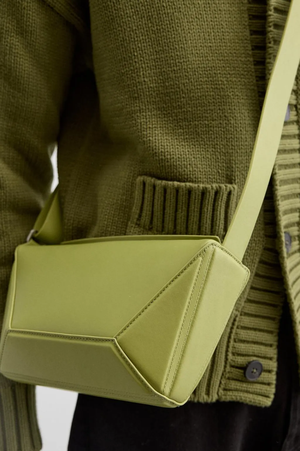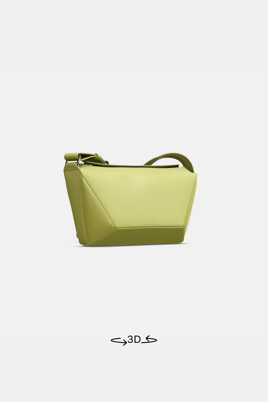 Bandolera fabricada en piel con acabado napa. Diseño geométrico. Compartimento principal con cierre mediante cremallera. El interior cuenta con dos bolsillos, uno de ellos con cierre mediante cremallera. Asa de hombro ajustable.
