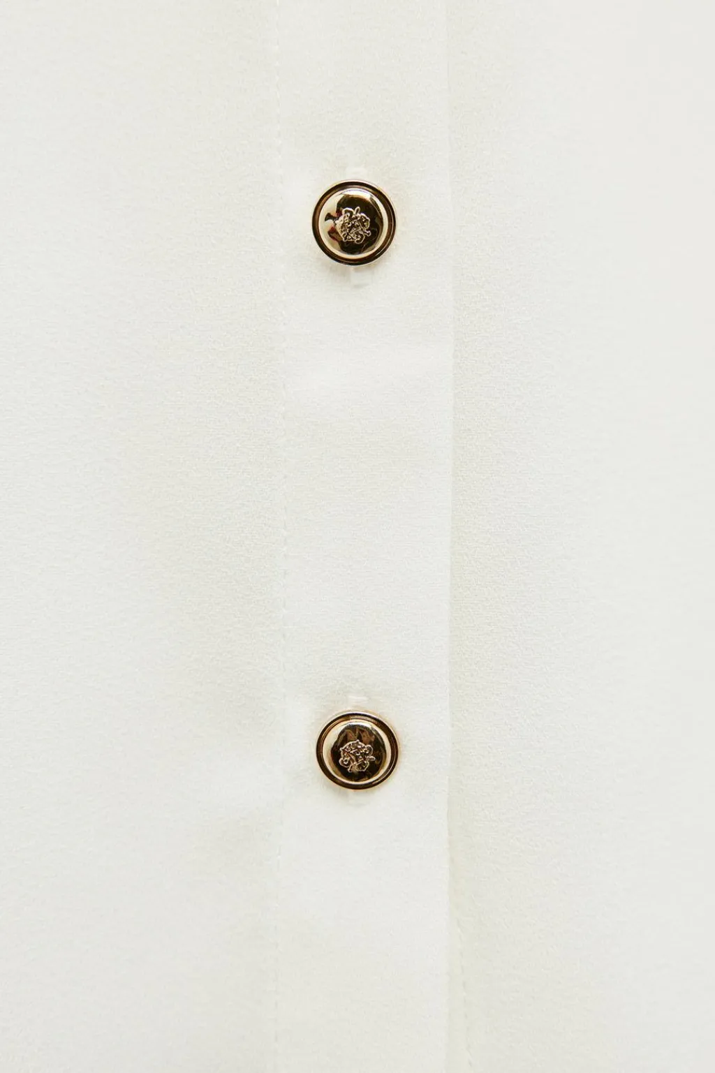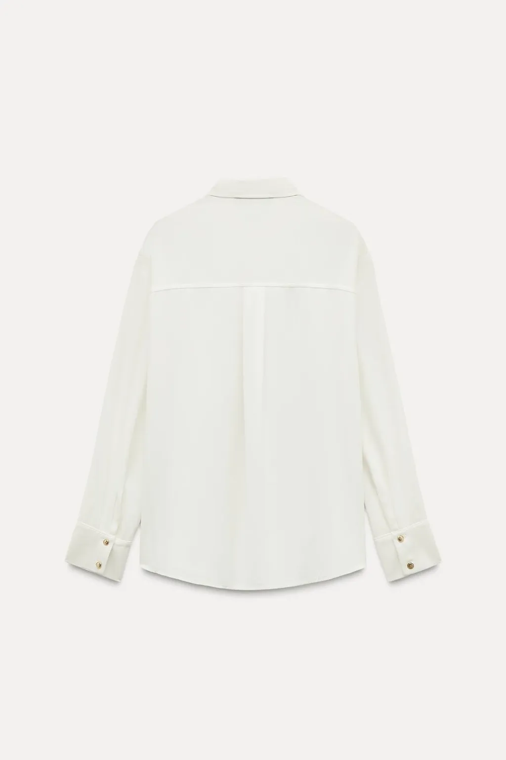 Camisa de cuello solapa y manga larga con apliques dorados en hombros. Bolsillos delanteros de plastrón con solapa. Cierre frontal con botones dorados.