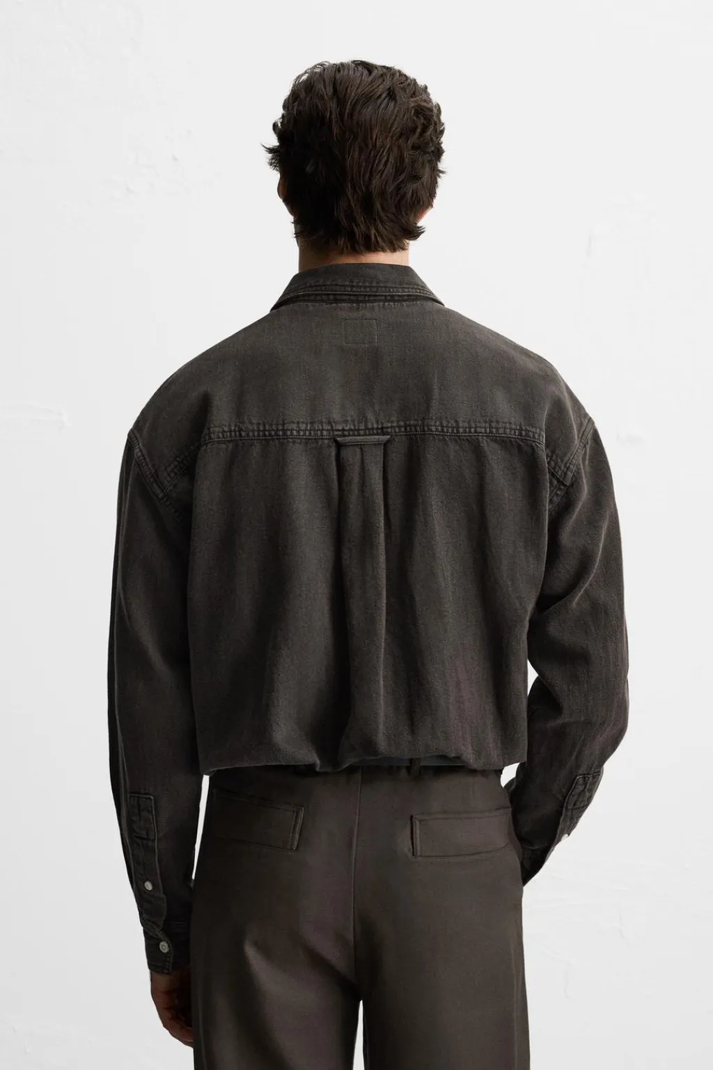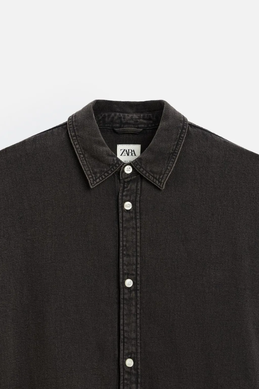 Camisa relaxed fit confeccionada en denim de algodón. Cuello solapa y manga larga acabada en puño con botón. Bolsillos de plastrón en pecho. Efecto lavado. Cierre frontal de botonadura.
