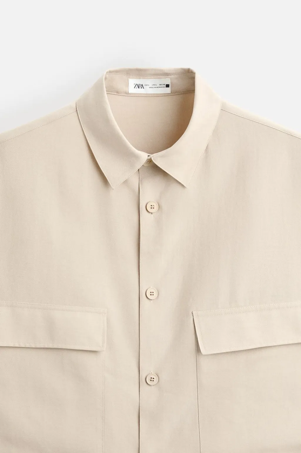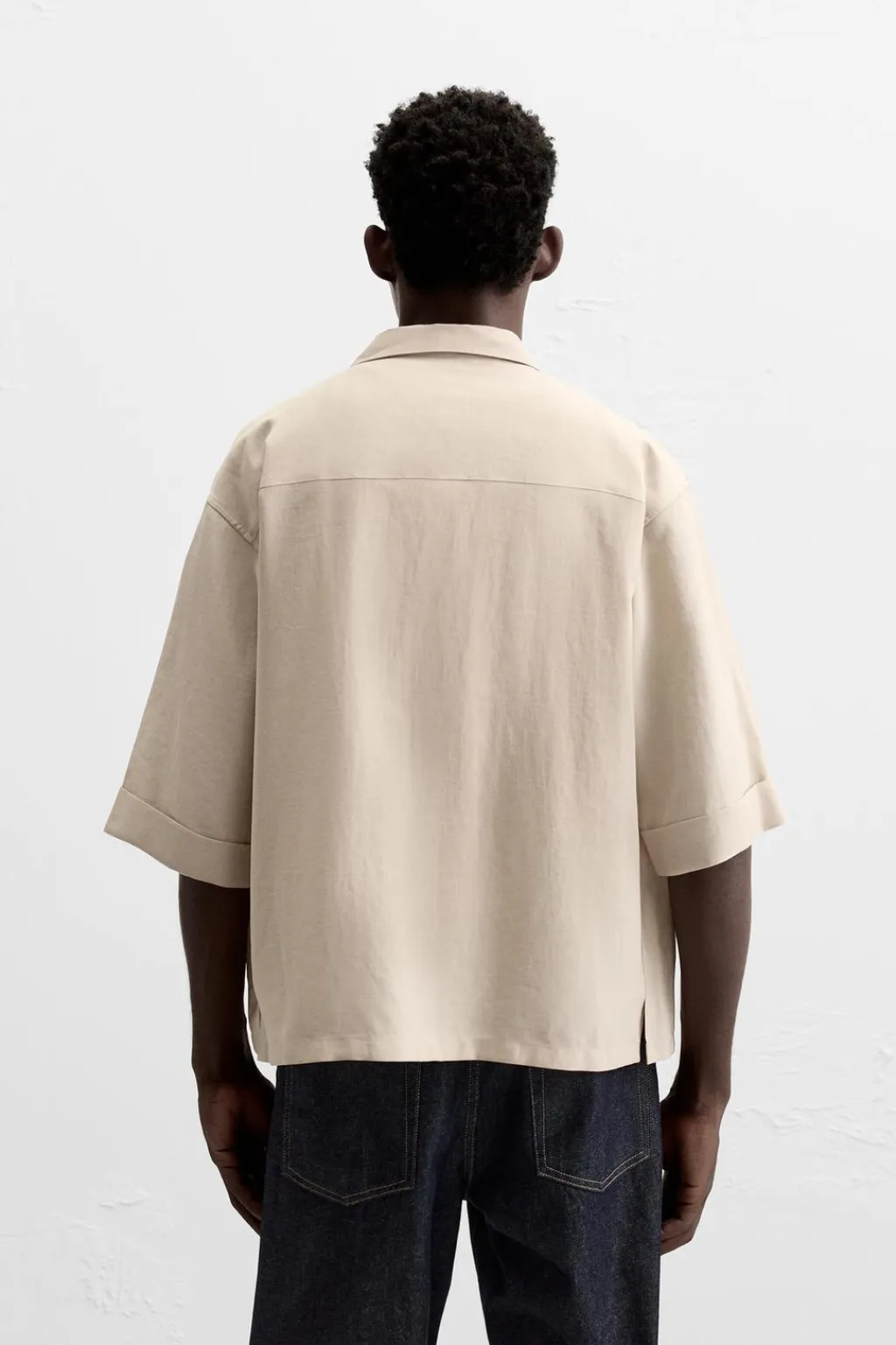 Camisa cropped fit confeccionada en tejido con mezcla de algodón. Cuello solapa y manga corta. Bolsillos plastrón con solapa en pecho. Cierre frontal de botonadura.