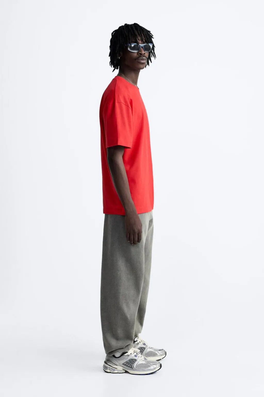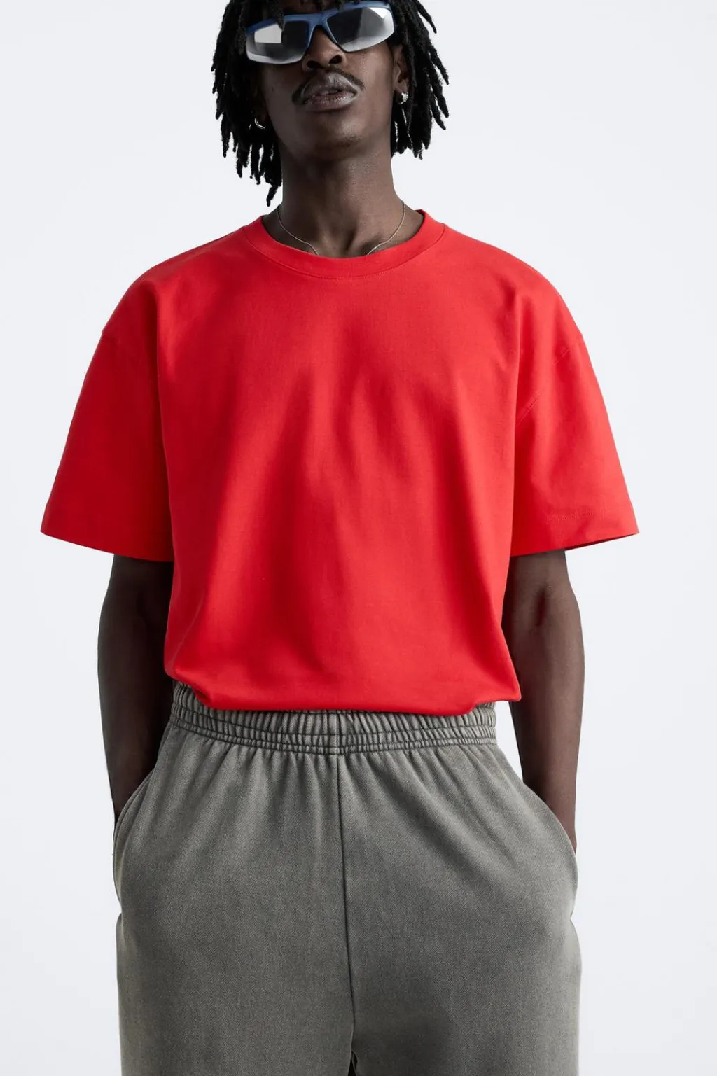 Camiseta amplia confeccionada en algodón compacto. Cuello redondo y manga corta.